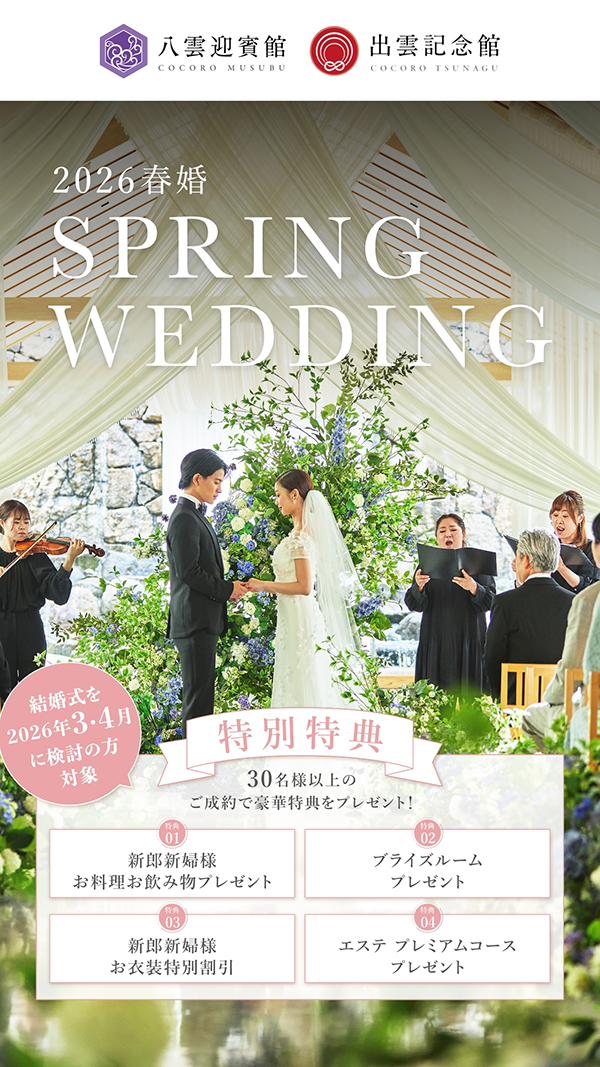 八雲の雲に包まれて、幸せになる。ゲストの温かい祝福と共に心と心の結びを。