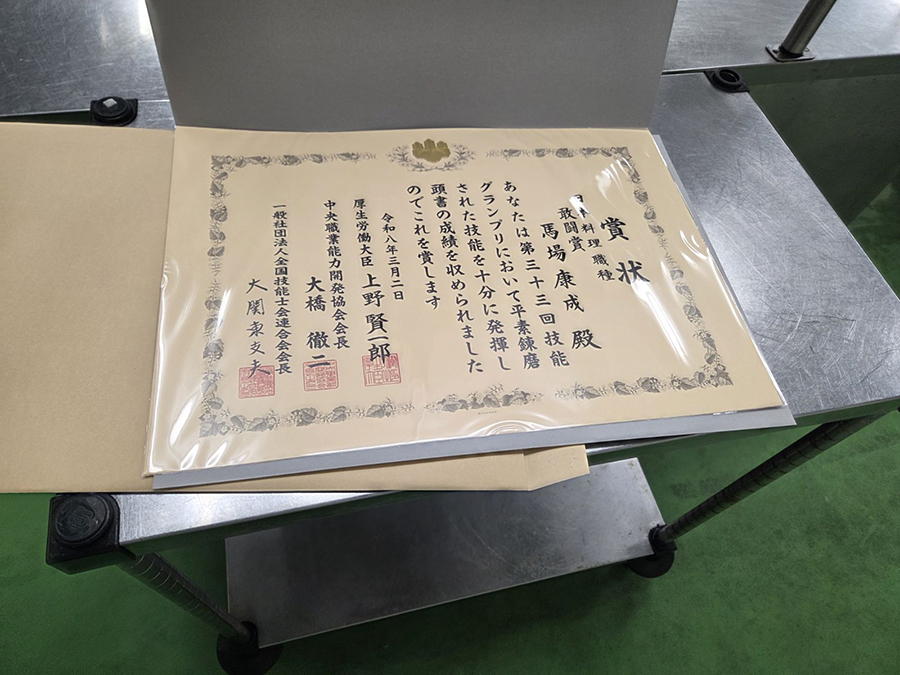 日本料理の職種において、この賞をいただけることは大変な名誉です。