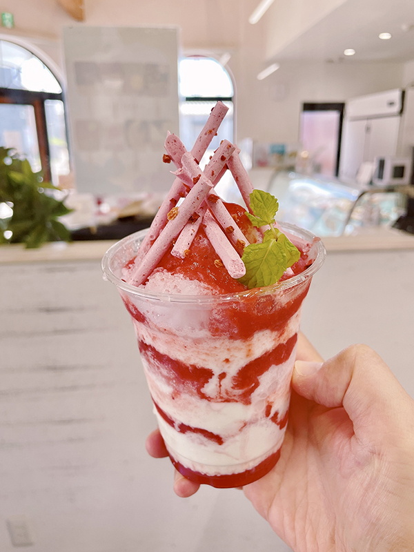 そして注目は、最後にのるイチゴのメレンゲトッピング。サクッと軽い口当たりと甘酸っぱさが、氷との相性抜群。スプーンで割る瞬間の楽しさもあり、まさに大人のかき氷と呼ぶにふさわしい一品です。
