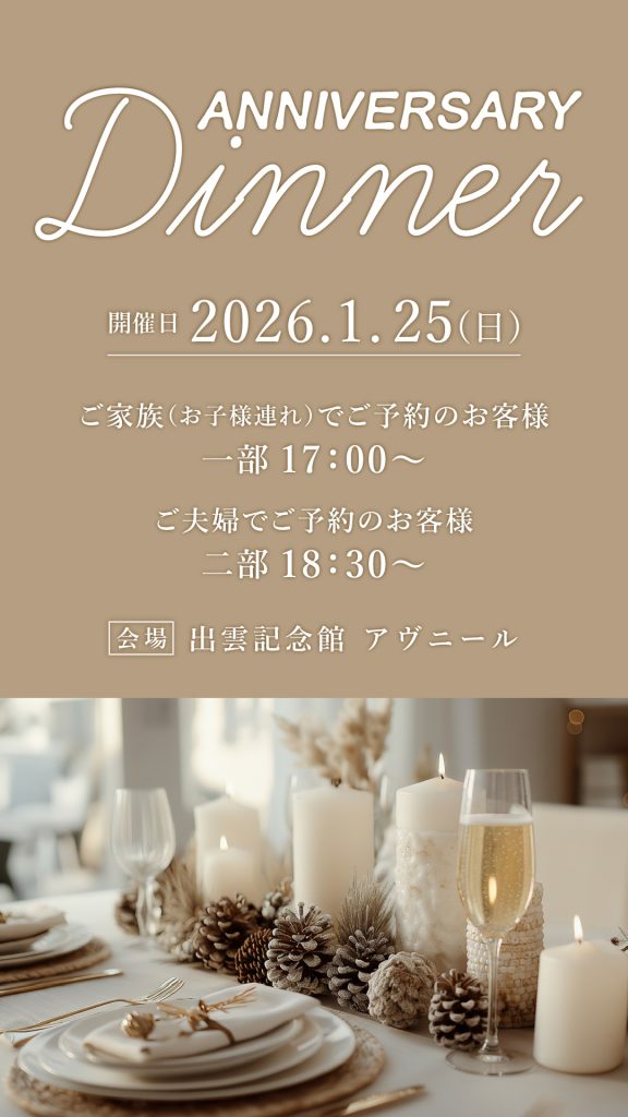 1月のAnniversary Dinnerの日程を公開いたしました✨