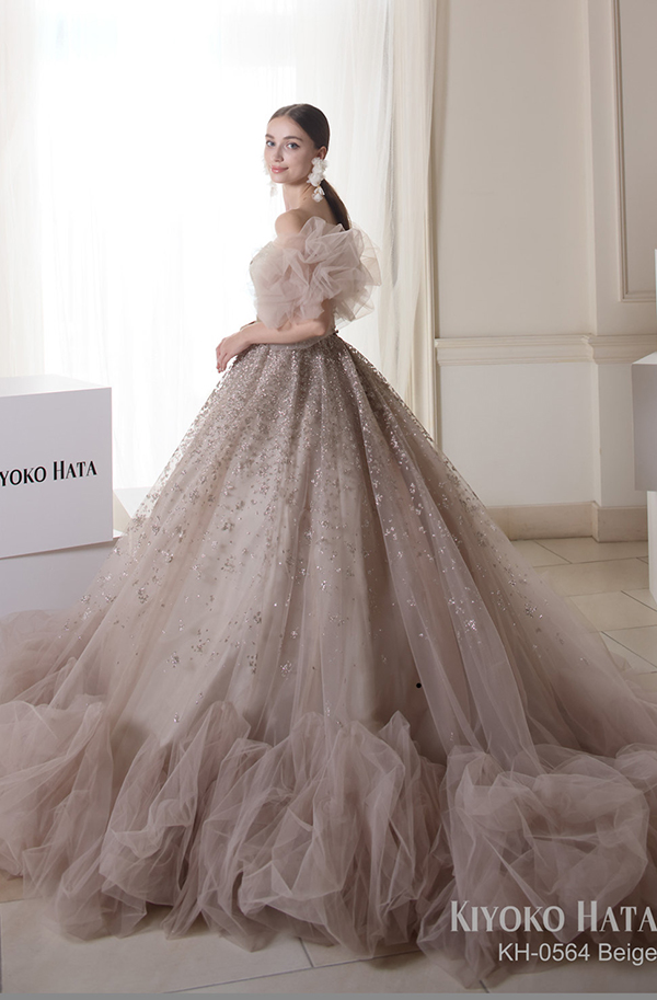 - 大ぶりのグリッターやスパンコール:披露宴会場の照明を反射してキラキラと輝くドレスは、雪の結晶が光るような華やかさ。主役ならではの圧倒的な存在感を放ちます。