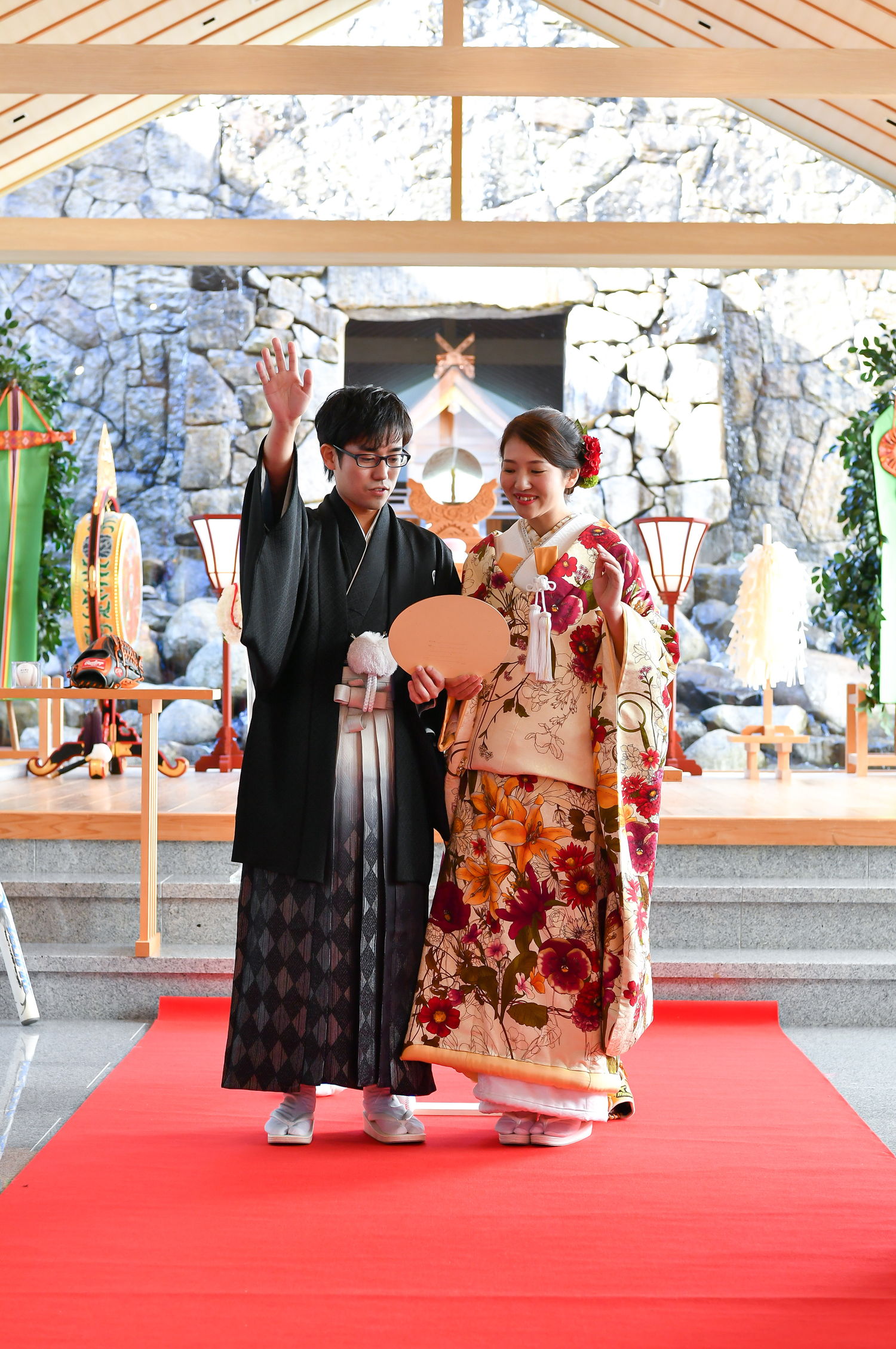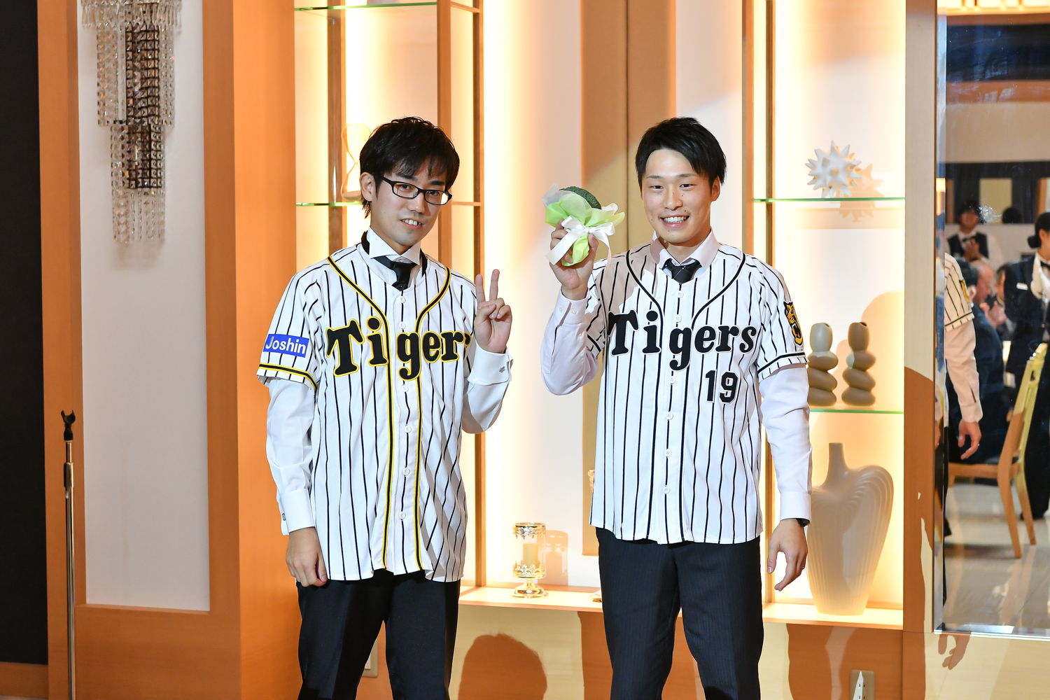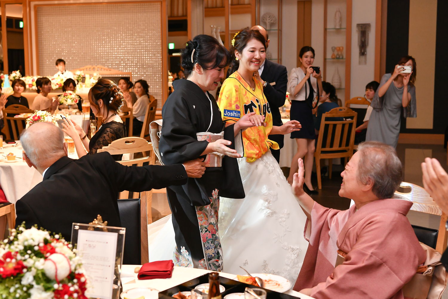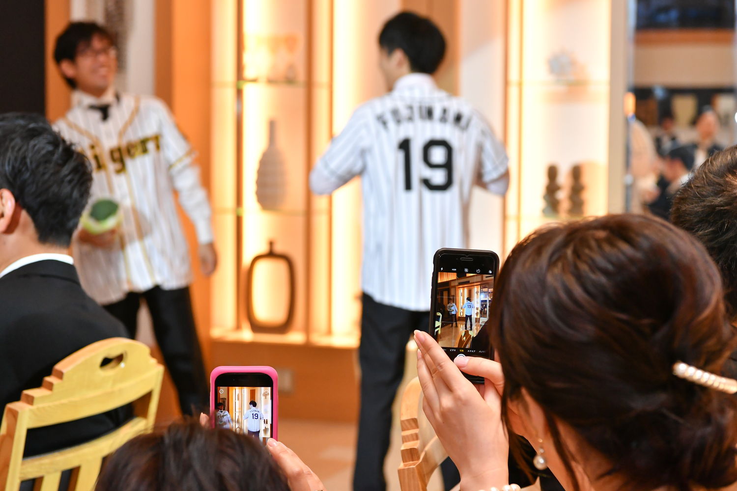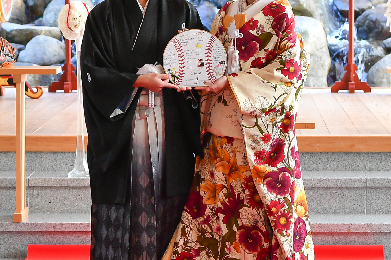 再入場では、衣裳の上に野球のユニフォームを着られたおふたり!