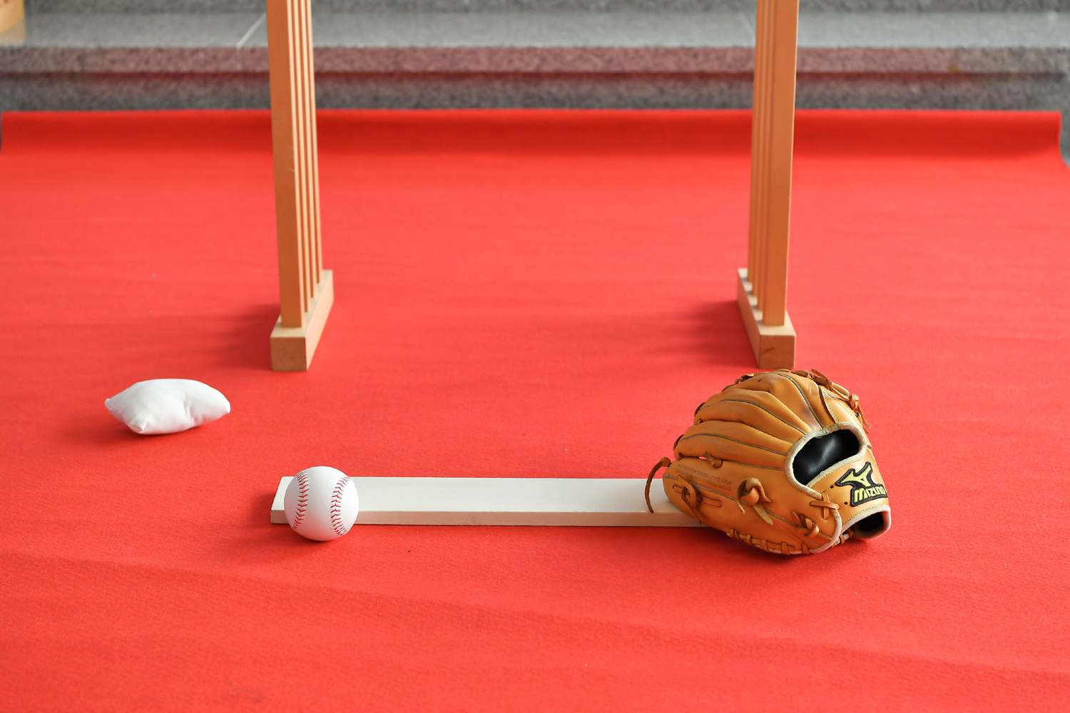 野球をモチーフにした誓いの言葉、ジェット風船、バット・トスで賑やかに。