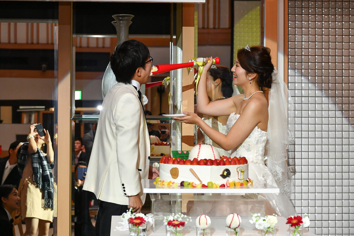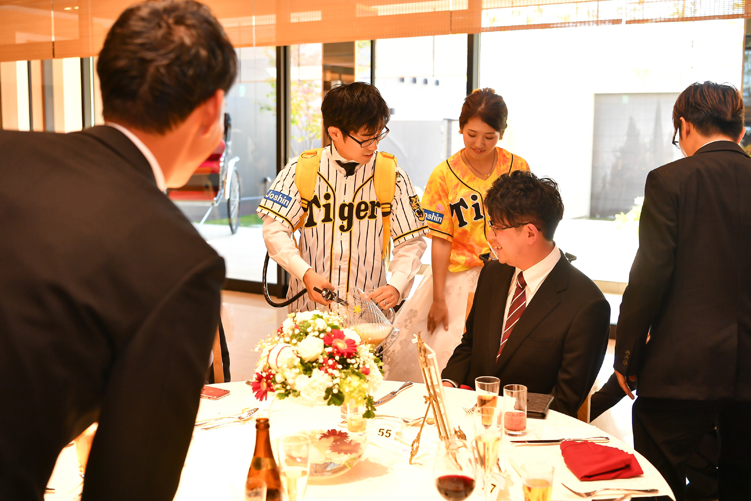 披露宴ではバットでのケーキバイト、ビールサーブなどゲストが退屈しないよう出来ることを全部しました!