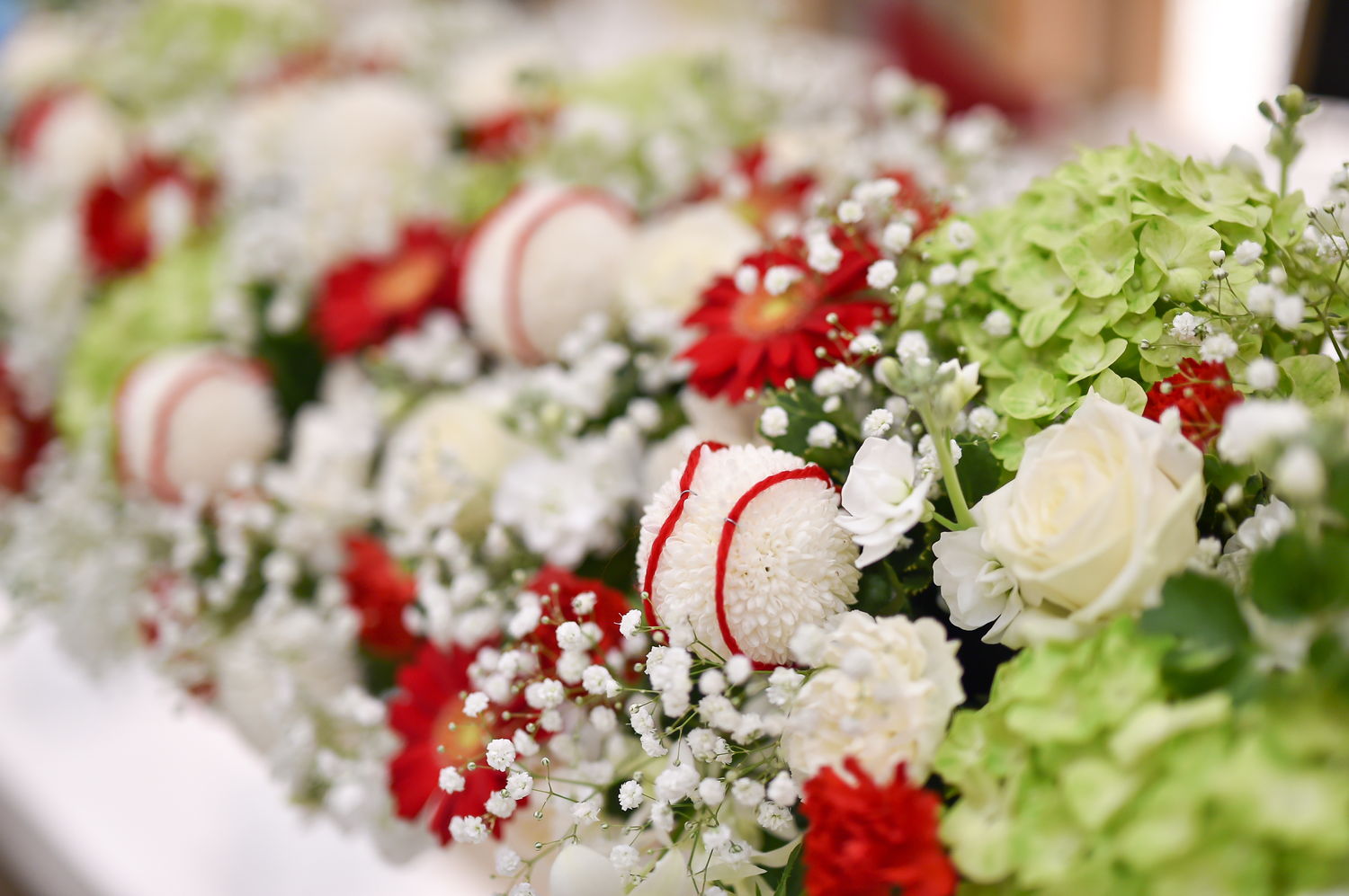 テーマは大好きな「野球」!細部までこだわったオリジナルの人前式。お花やケーキ、衣裳にもテーマを散りばめて…