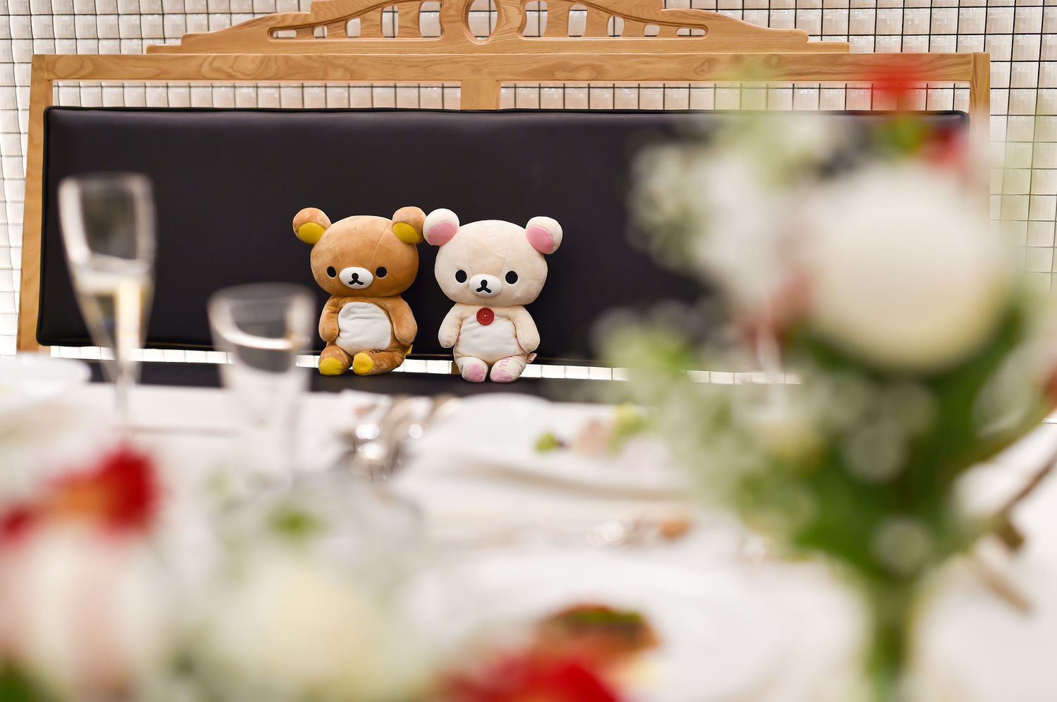 お二人がお色直しの間、メイン席にはぬいぐるみたちが可愛く待機・・・♡