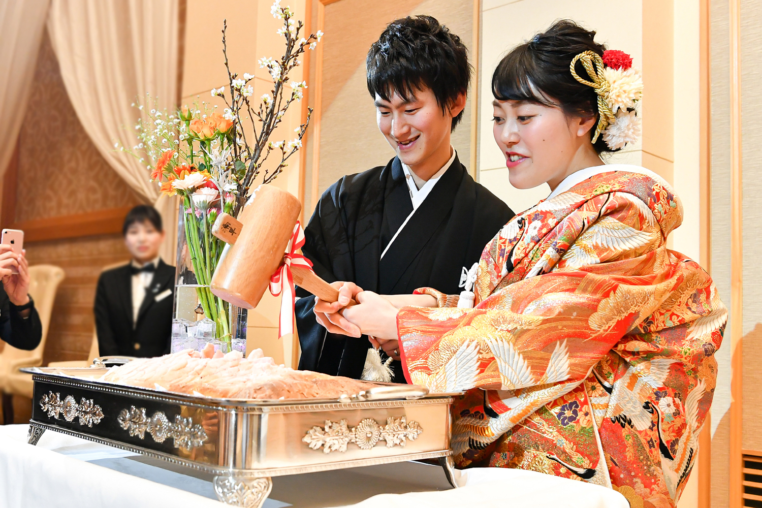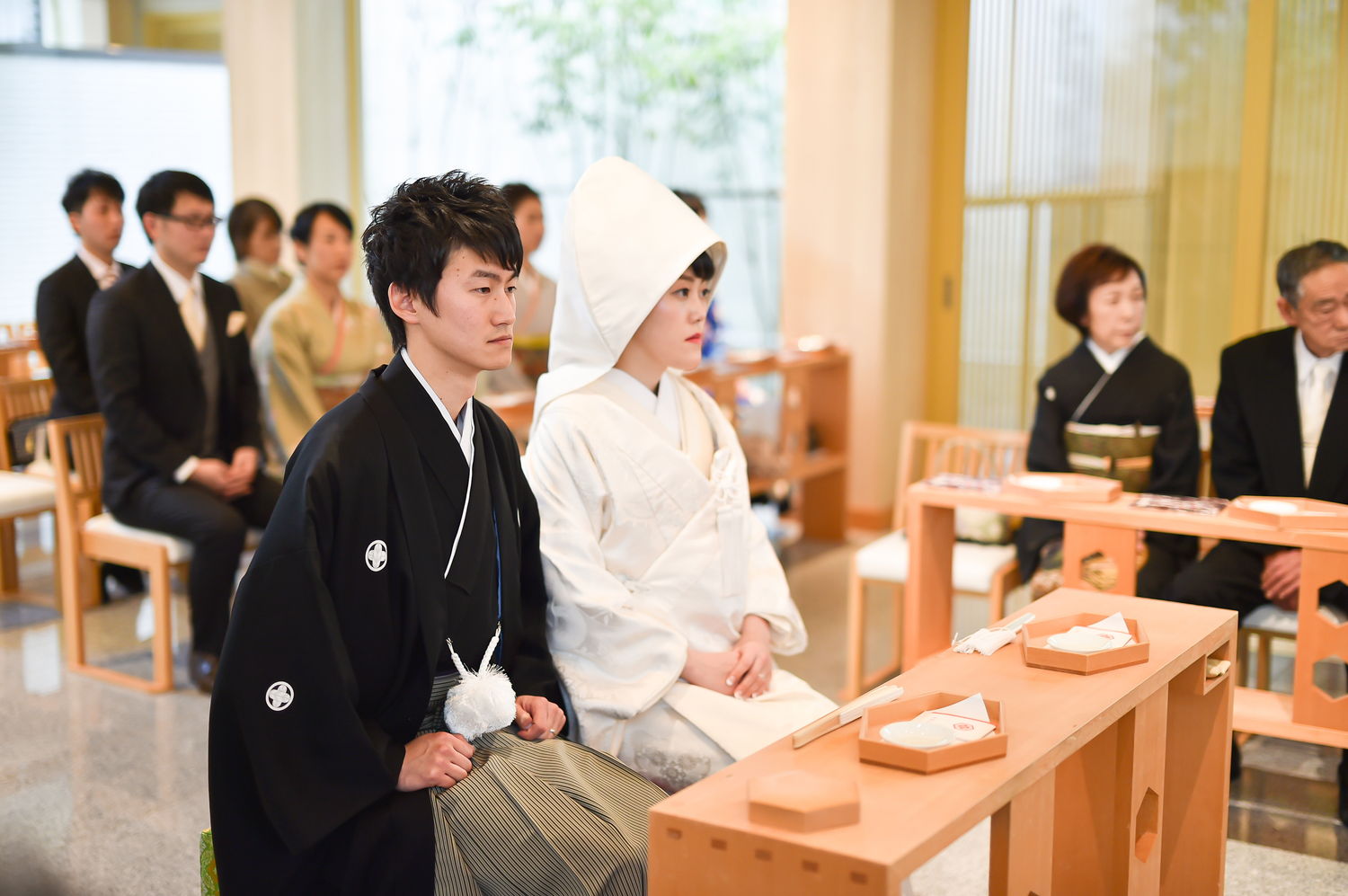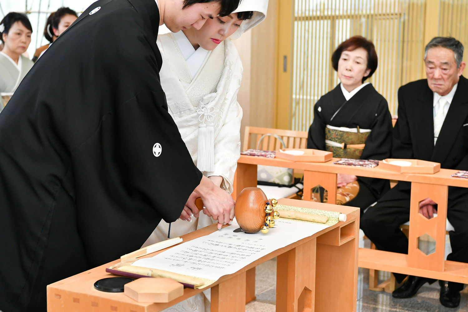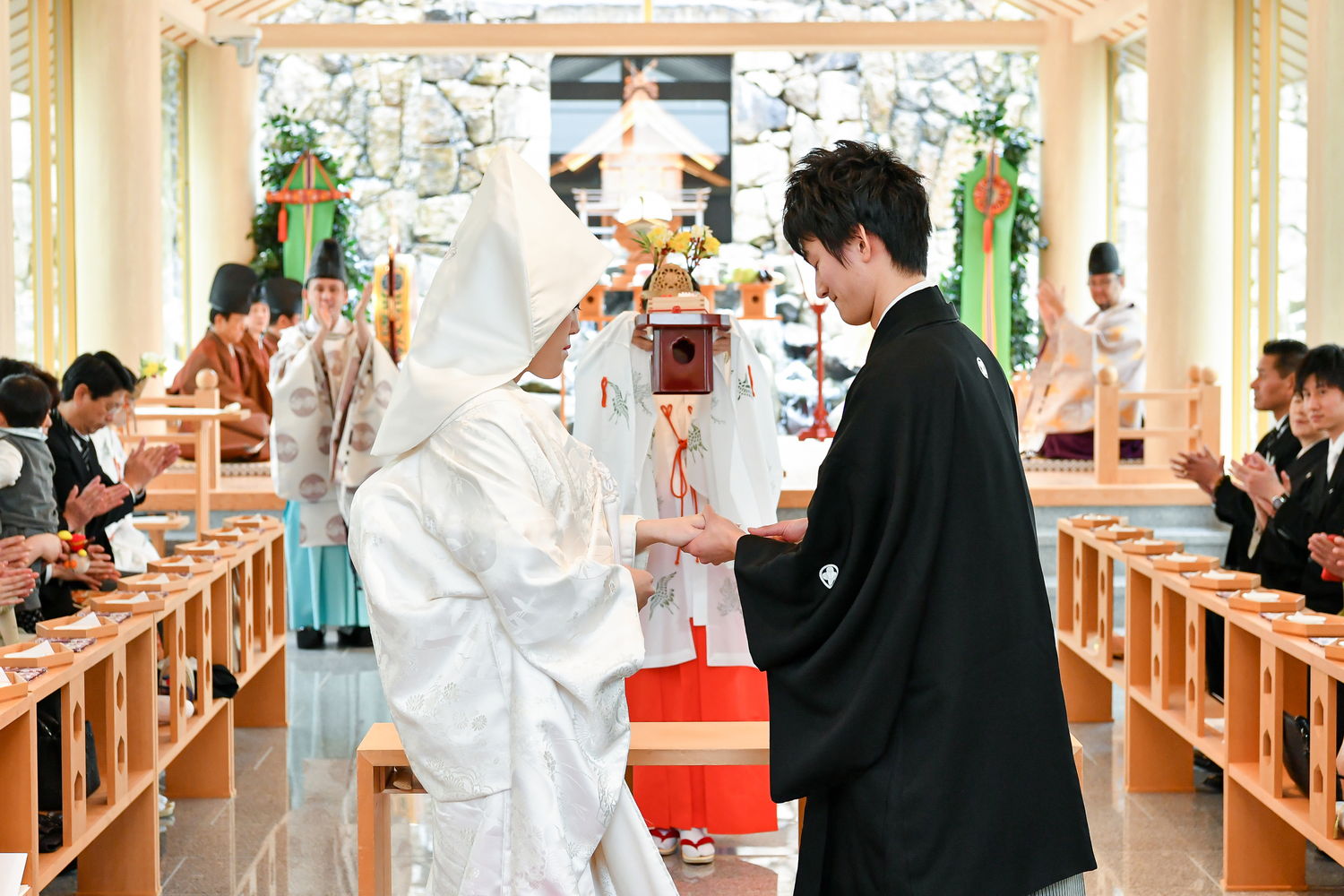 厳粛な雰囲気の中執り行われた神前式。