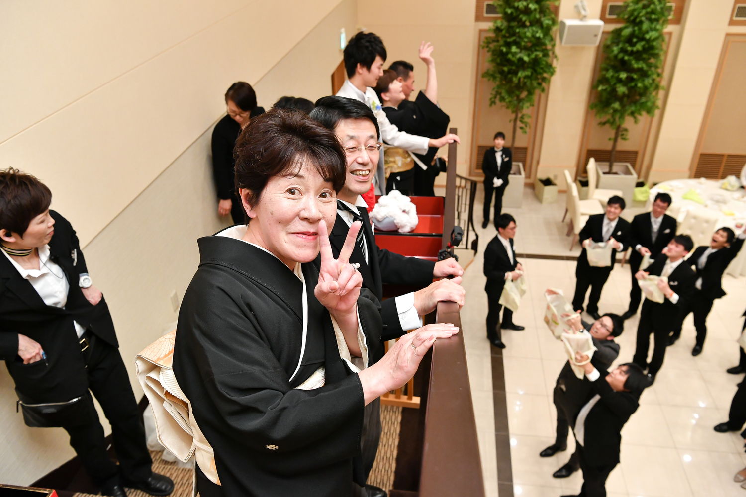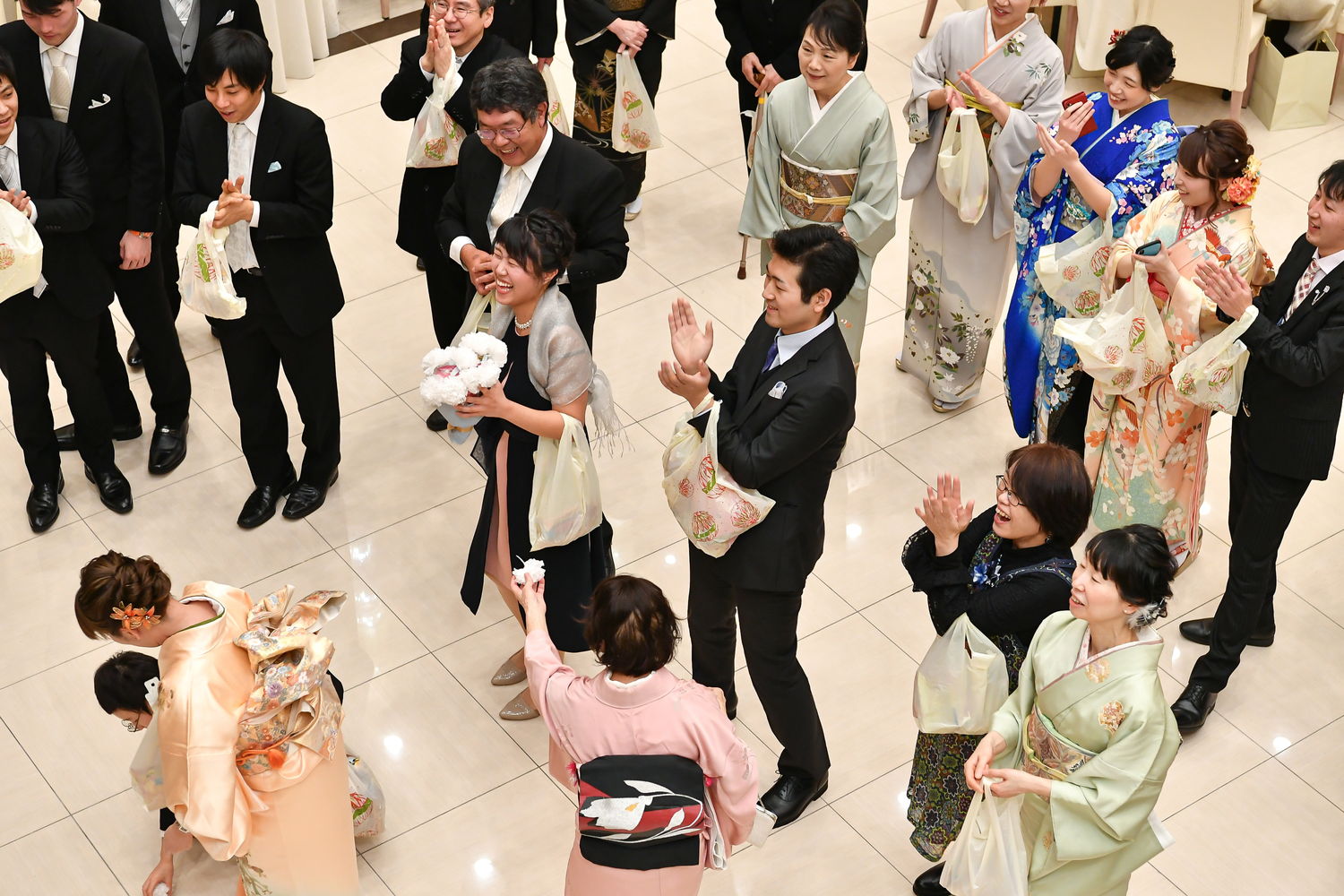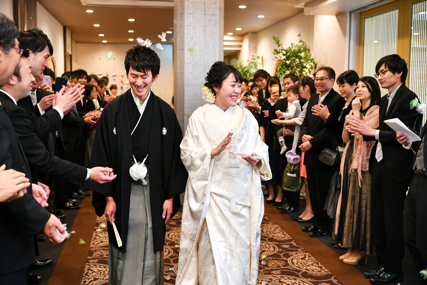そんな天気とは反対に、ゲストから祝福と、「おめでとう」のライスシャワーに