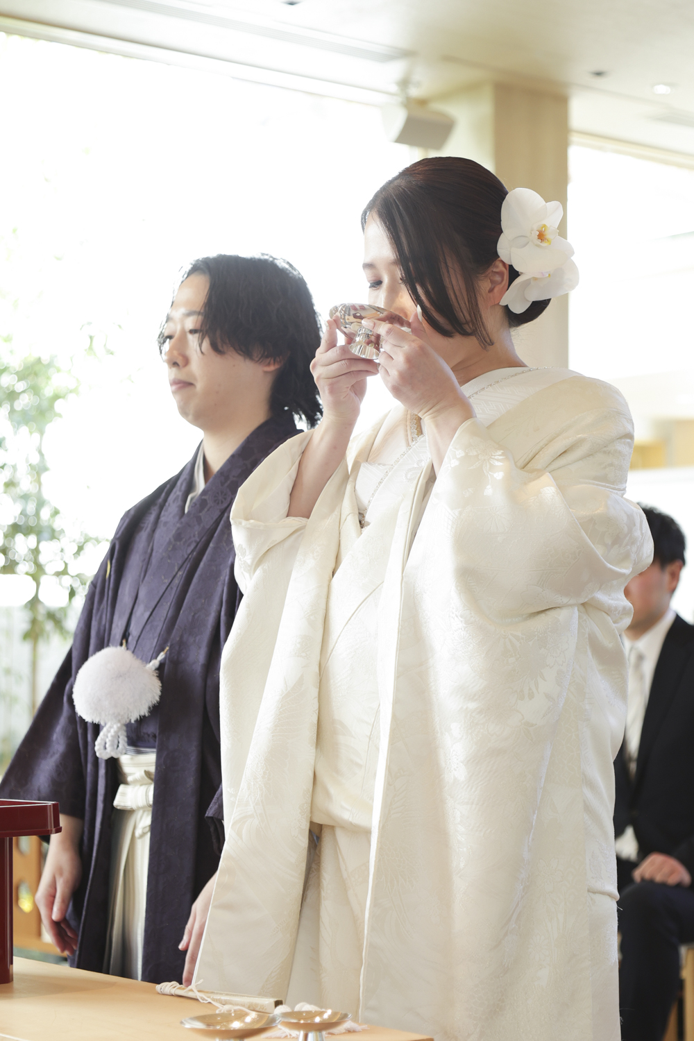 和装を着た姿を両親に見てもらうことが夢だったことや「和」の雰囲気が好きで結婚式をするなら神前式と決めていたこともあり八雲迎賓館を選びました