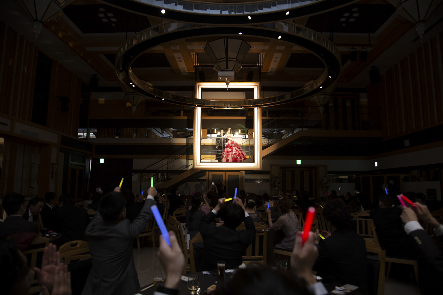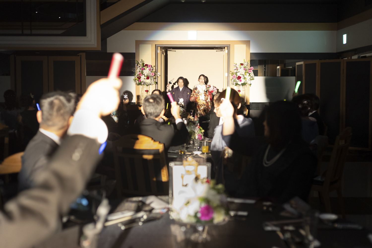 披露宴での入場や退場で自分達の好きなアーティストの曲をかけてゲストの方々にペンライトを振ってもらいました
