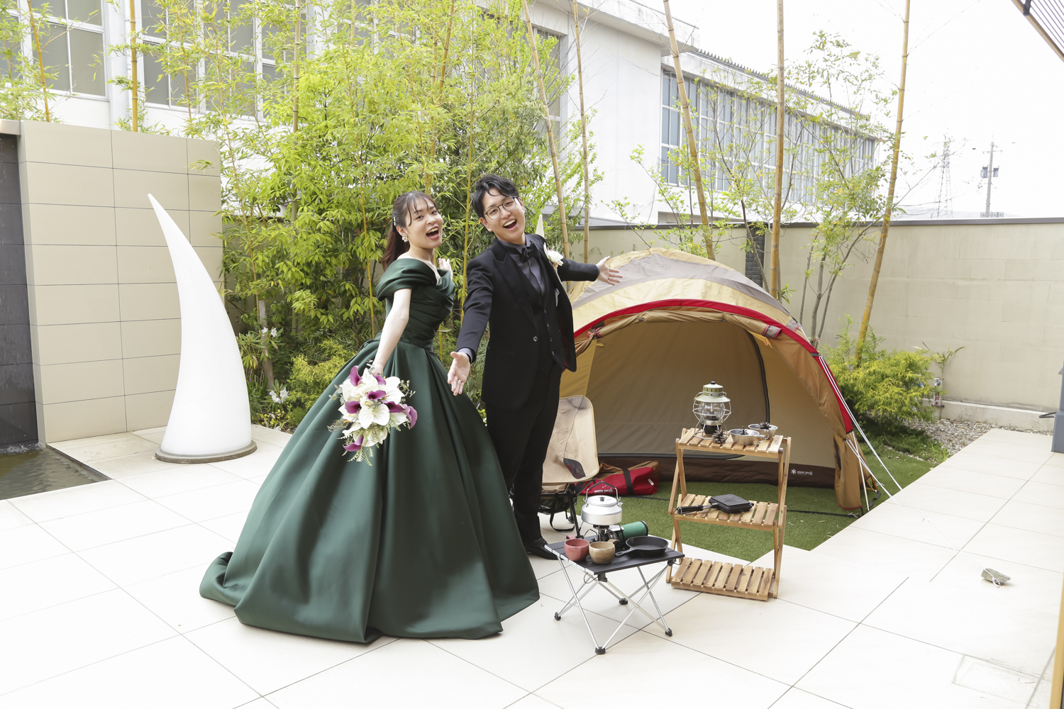 また ふたりの趣味であるキャンプの要素を入れられないかと思い 食事の中のお肉料理はガーデンでバーベキューのイメージでお願いしました