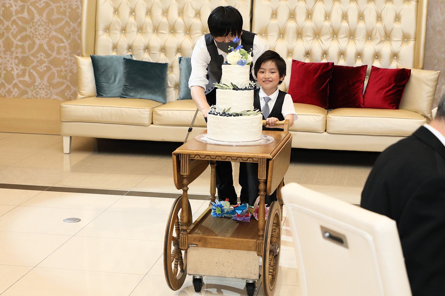 挙式後の演出としてお菓子まきをする予定でしたがあいにくの天気で残念ながらできませんでした…
