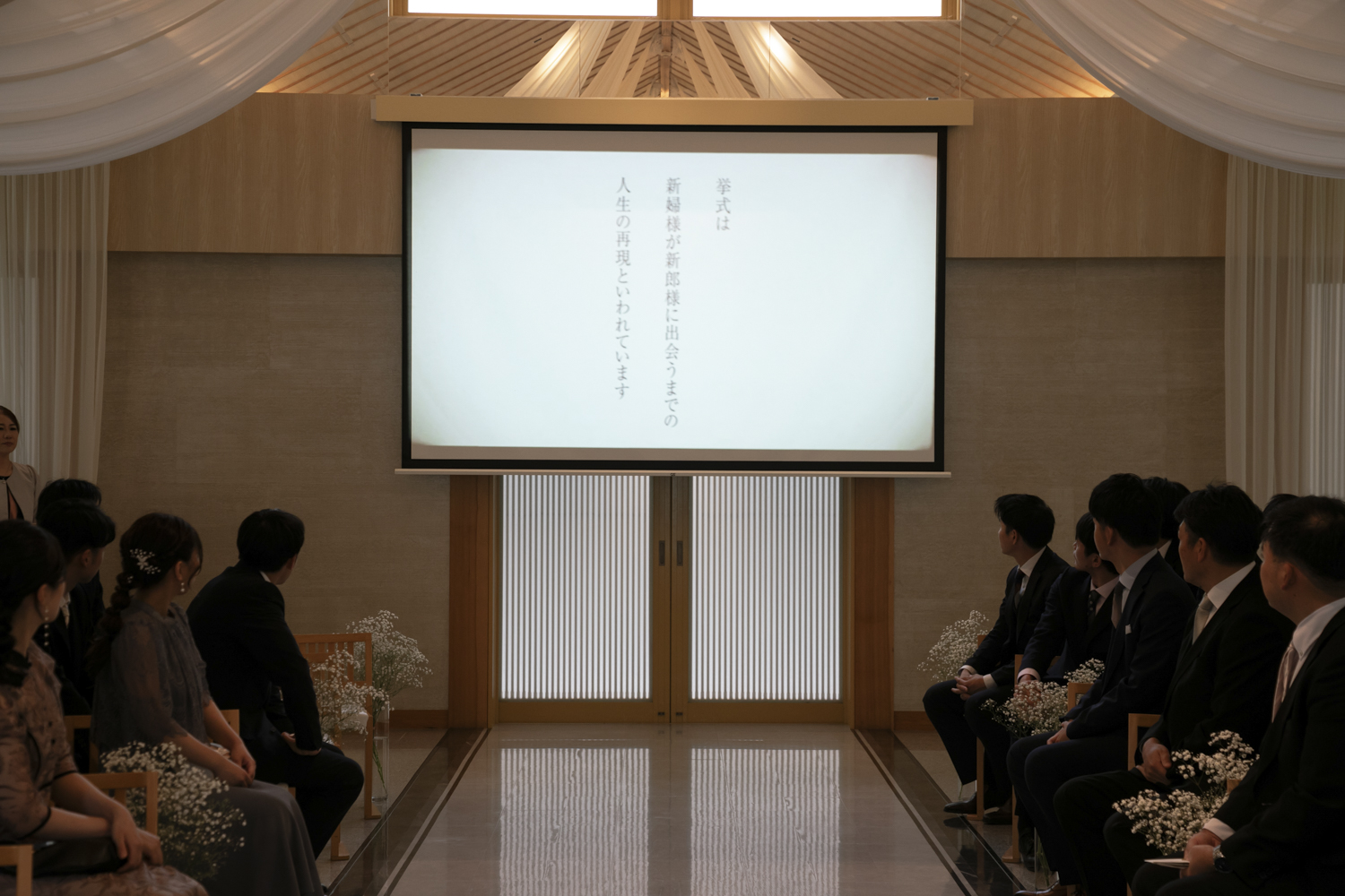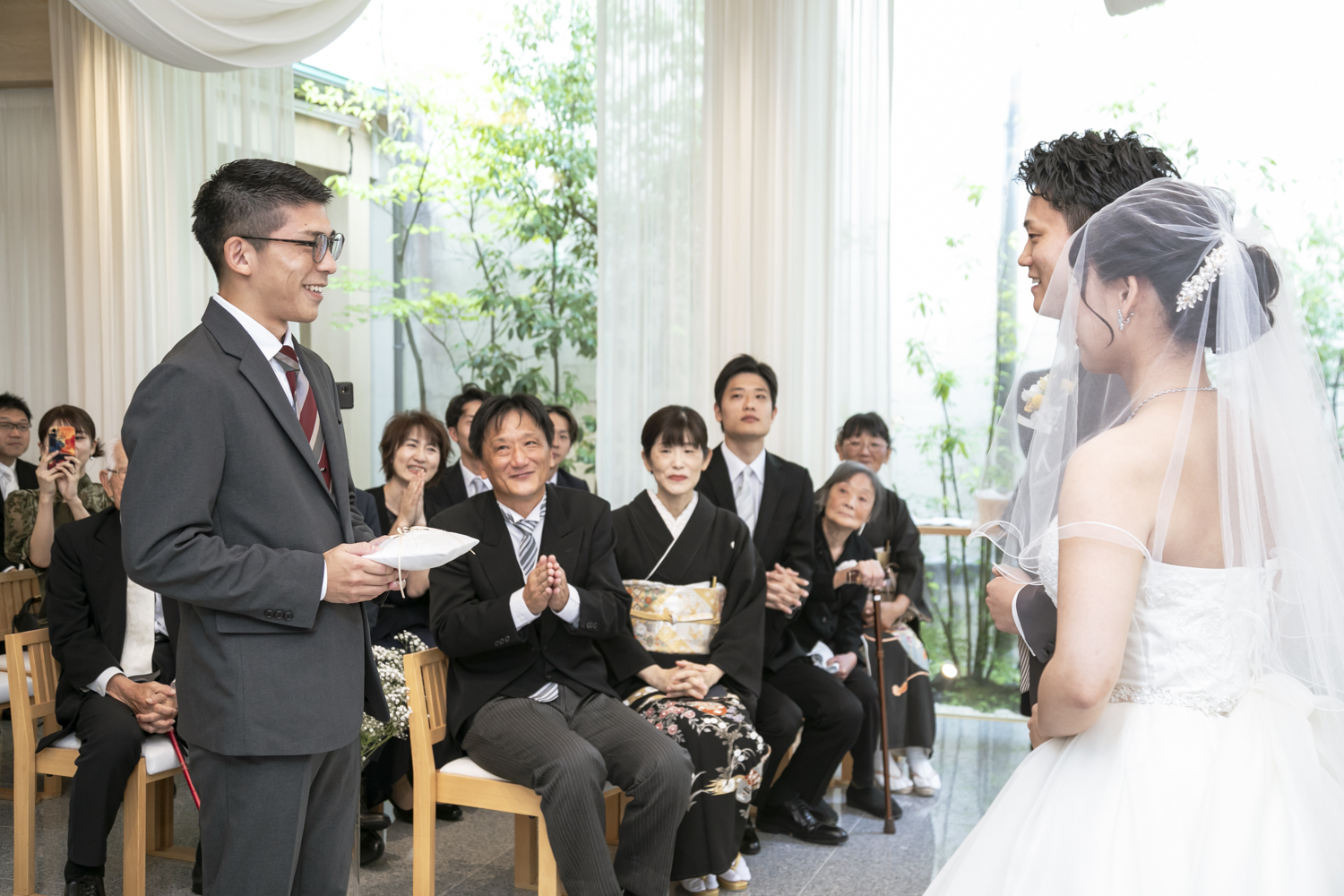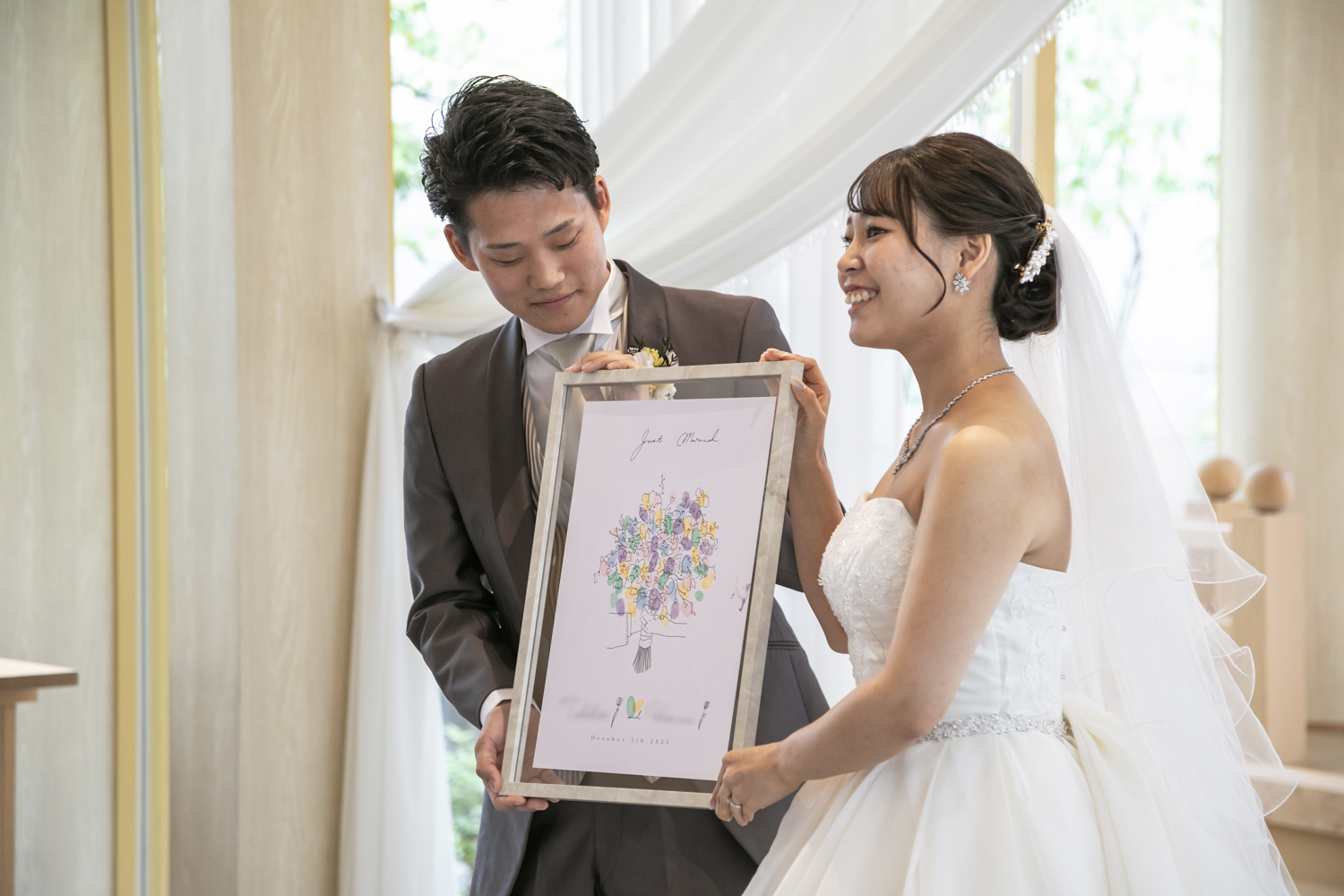 とても素敵な空間で行なった人前式はゲストの皆様からの反応も良く ゲストの皆様の前で誓いを立てたり 一緒に証明書を作り上げたりできたことは私たちにとってとても良い思い出となりました!