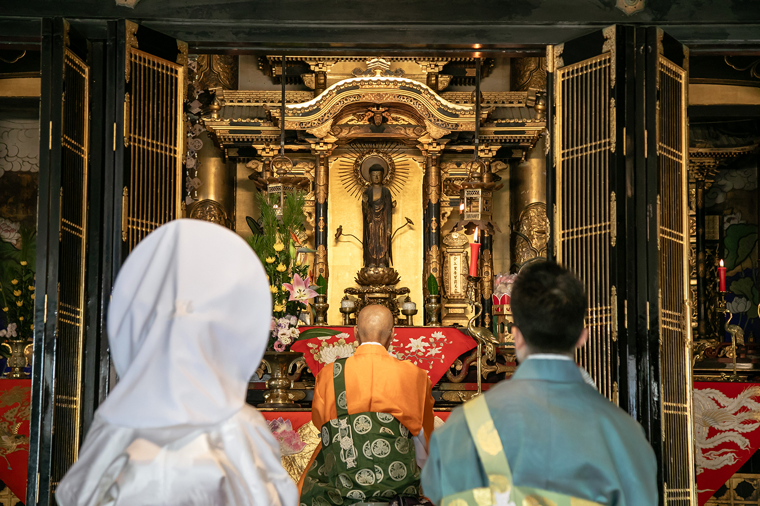 私たちは自坊にて仏前式を行いましたが八雲迎賓館から車で約1時間の距離にあり早朝から担当プランナーさんをはじめ 美容師さんやカメラマンさんなど沢山のスタッフさんに協力して頂きとても良い結婚式を挙げることができました