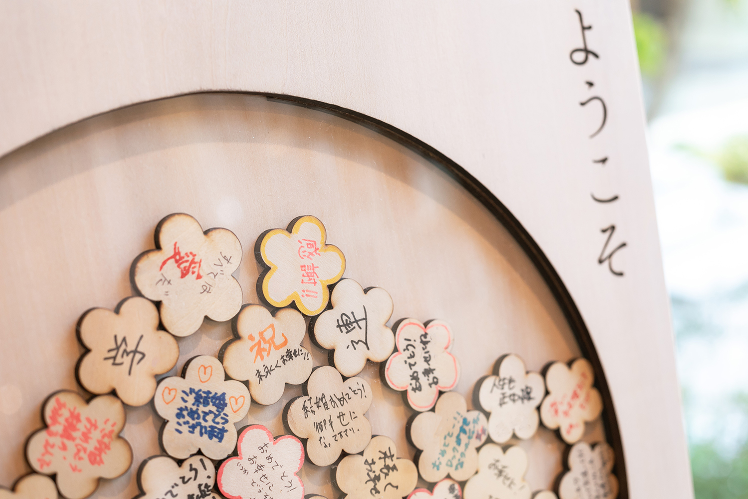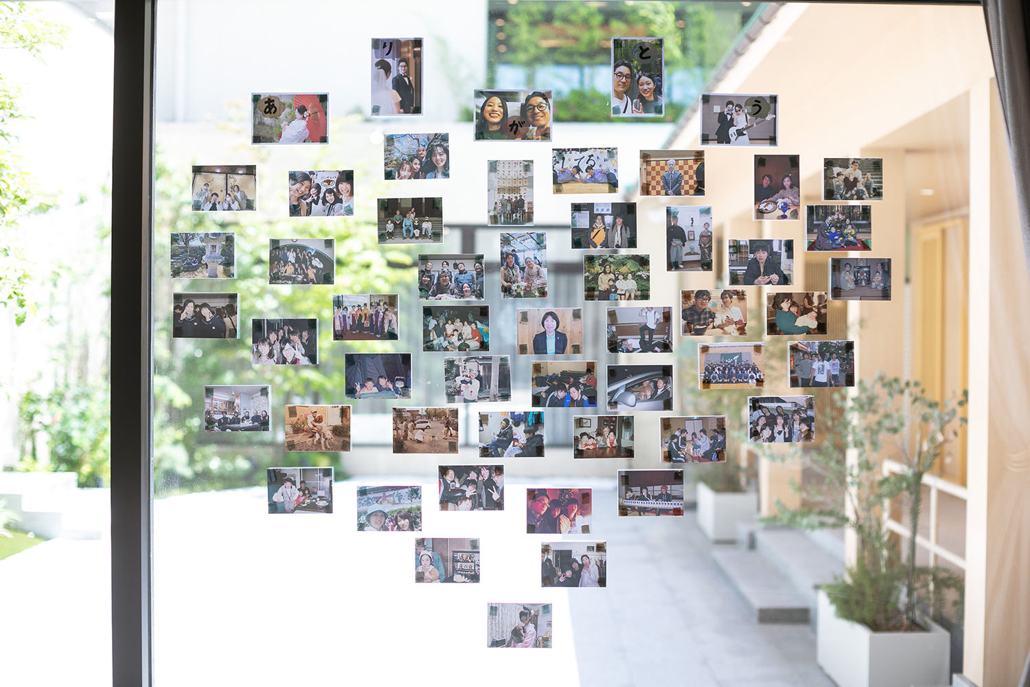 ウェルカムスペースも自分たちの人柄を表すだけでなくゲストの方と過ごしたこれまでの思い出の写真を沢山窓に貼りました