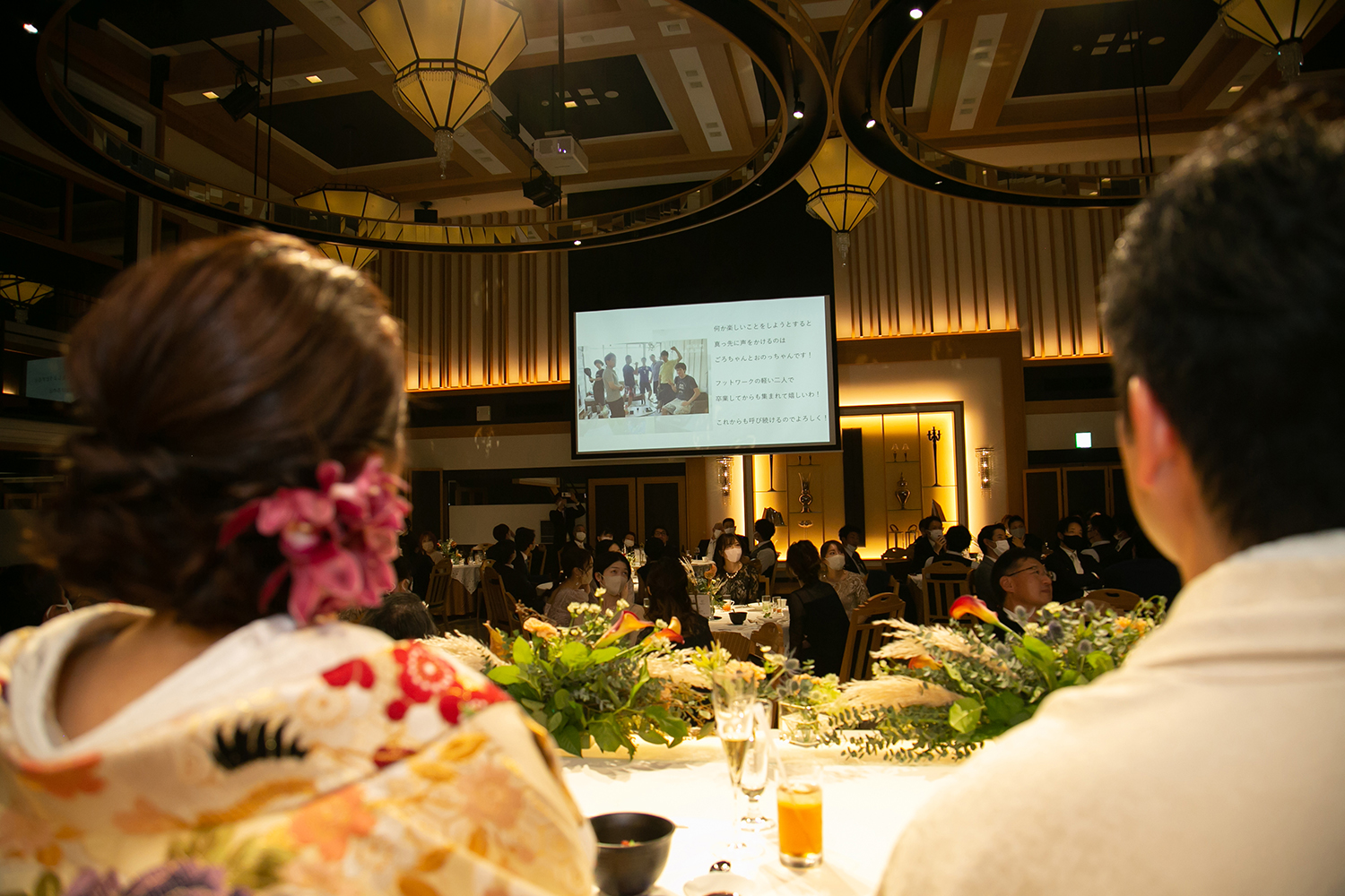感動的な式としてスタートしたいと考えていたのでムービーを使って両親やゲストの方々を泣かせにいき