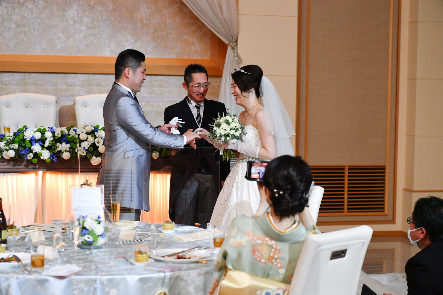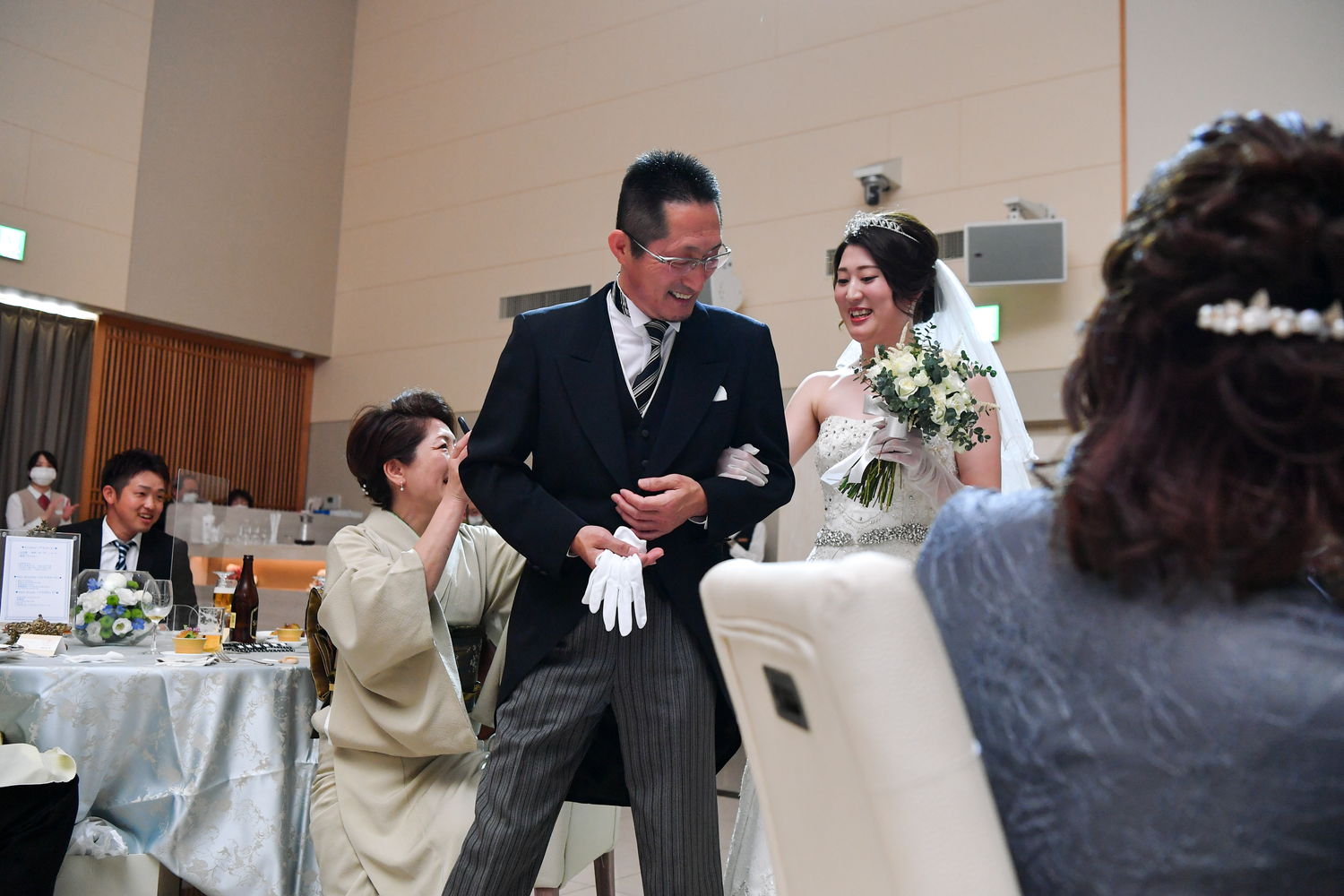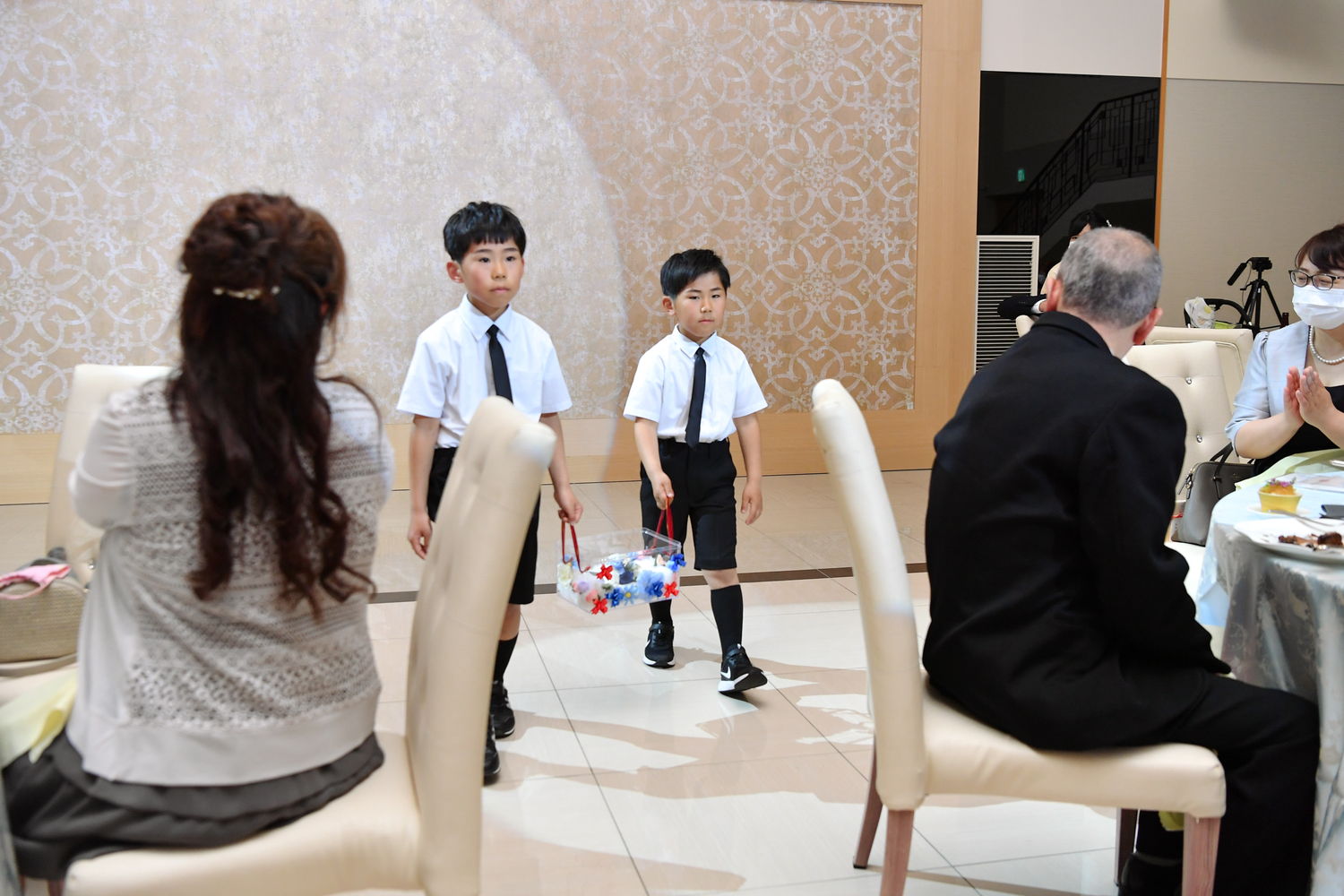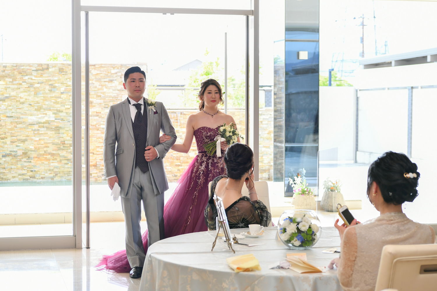 再入場はおふたりとも洋装で