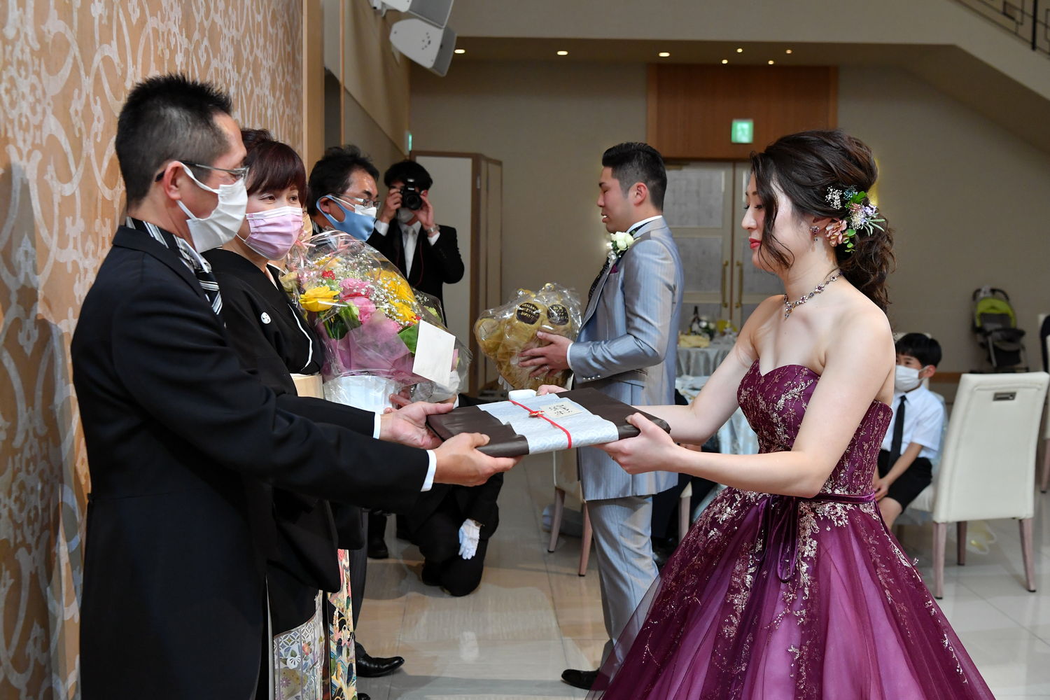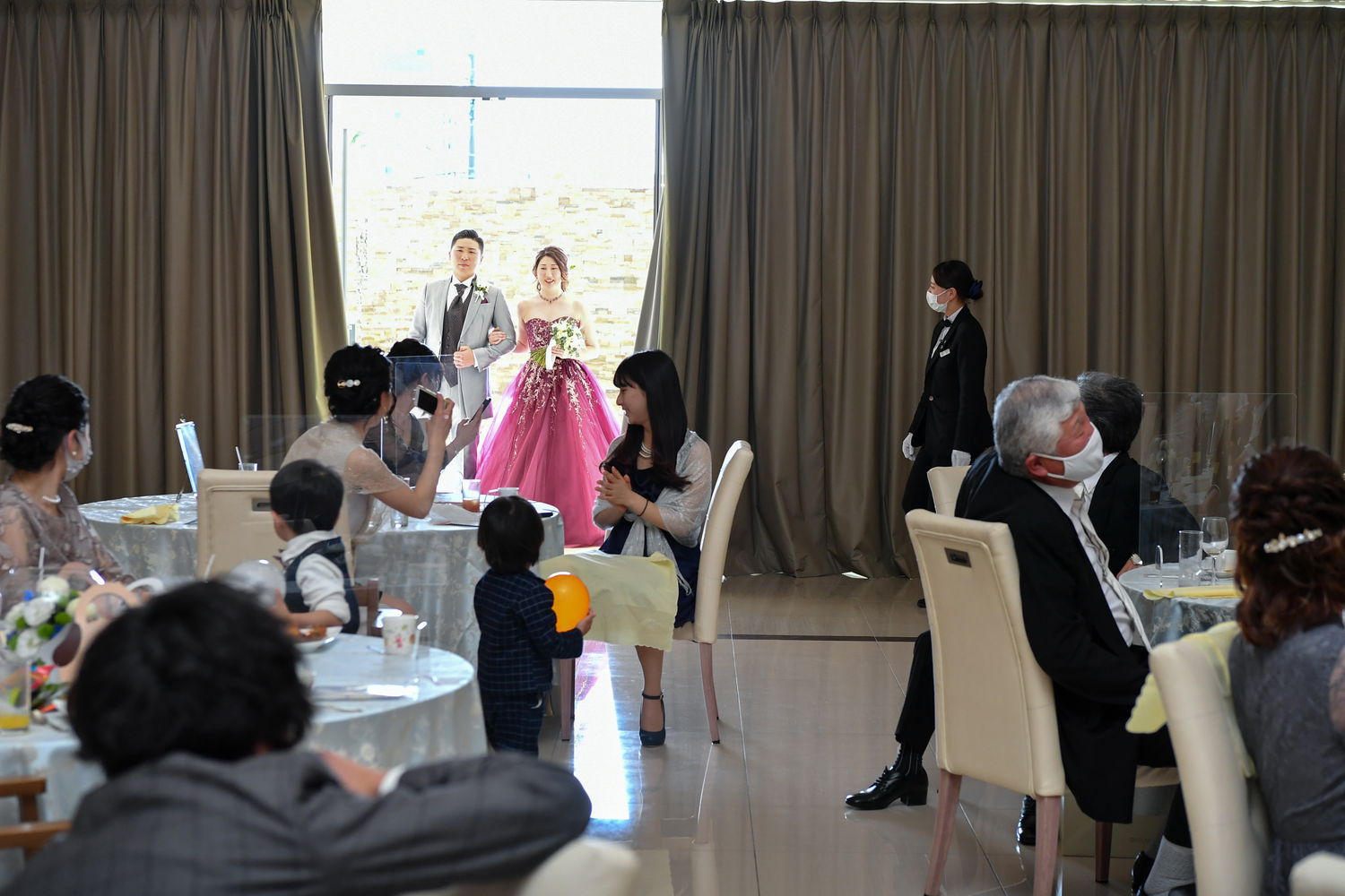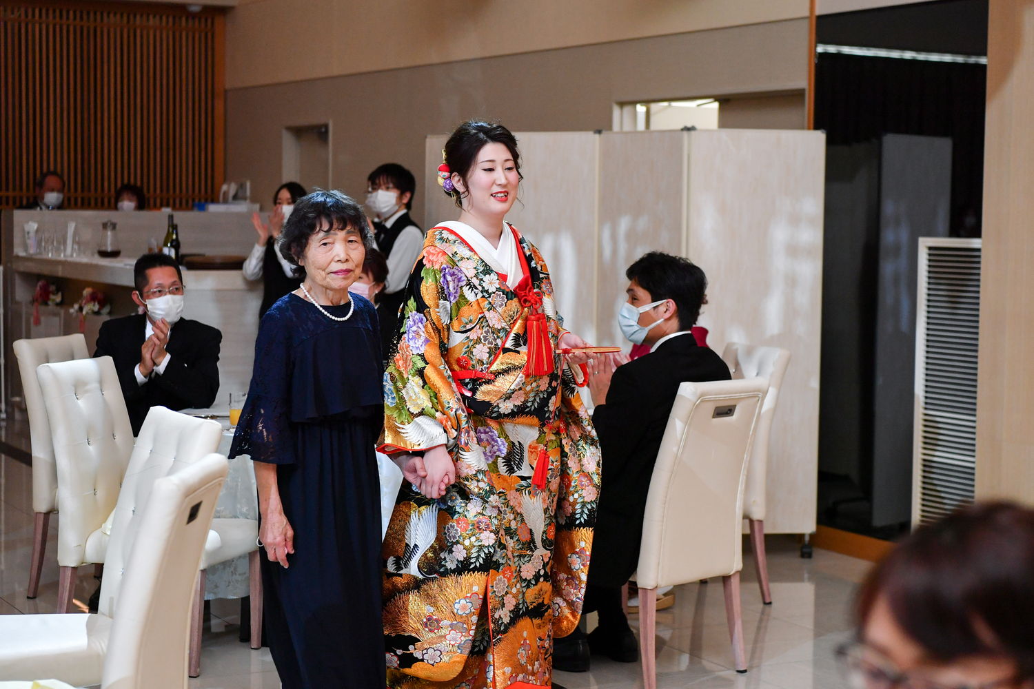 再入場はおふたりとも洋装で