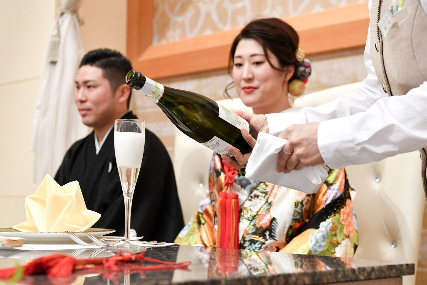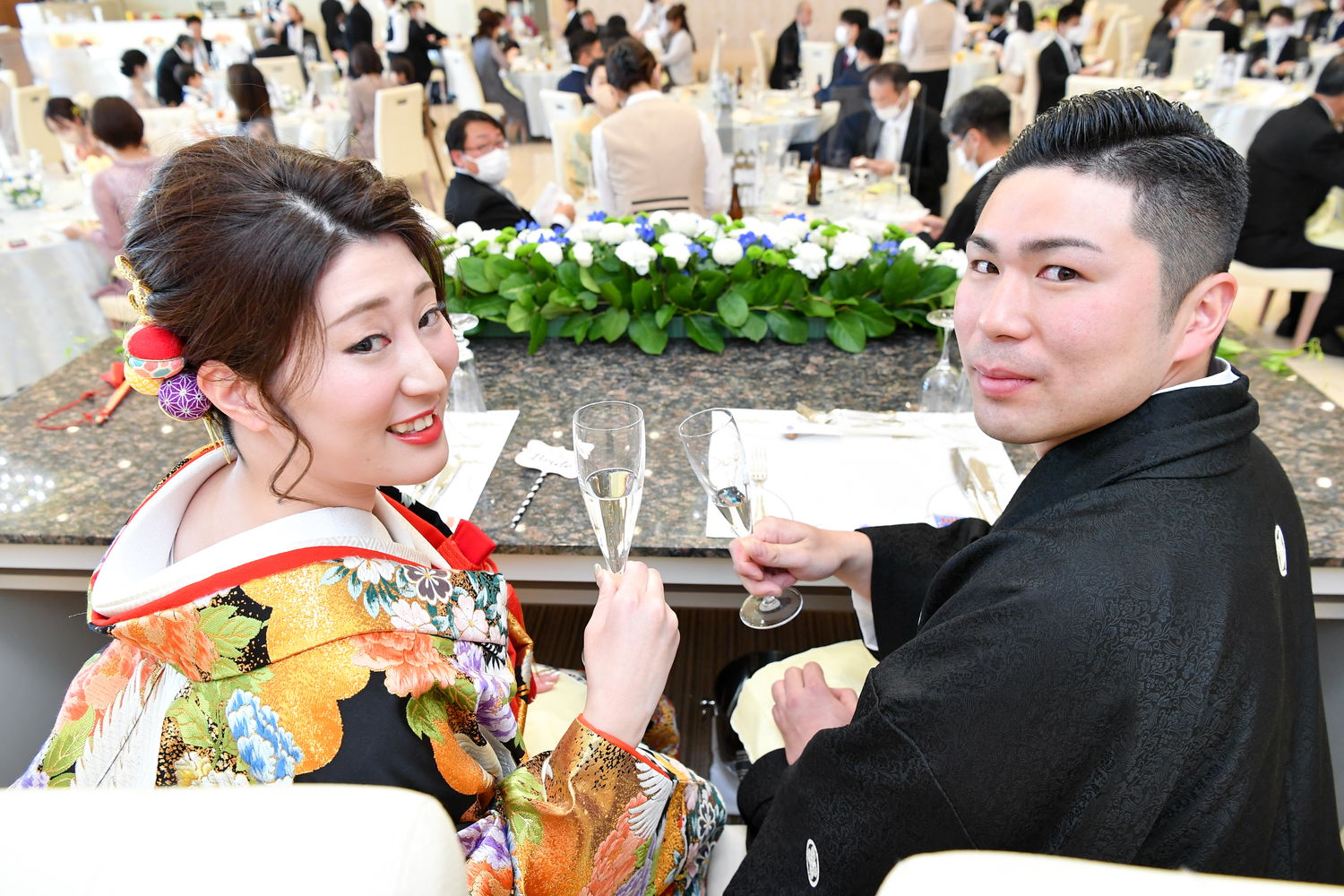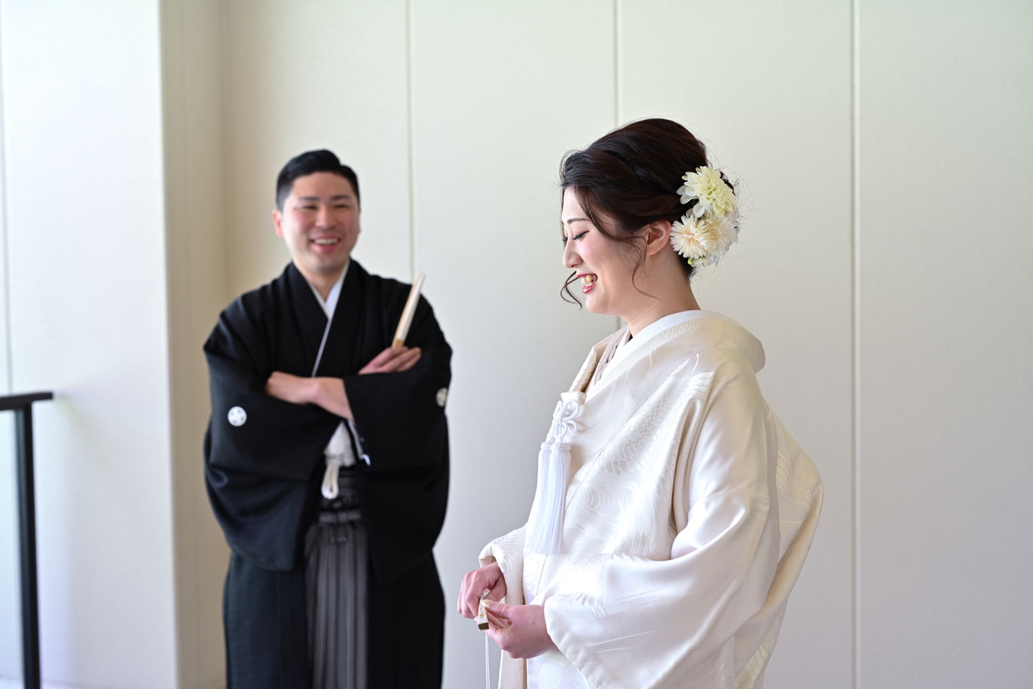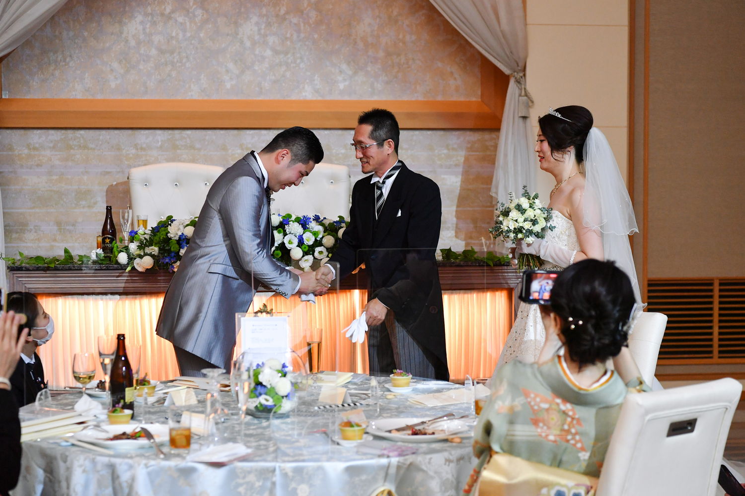 再入場はおふたりとも洋装で