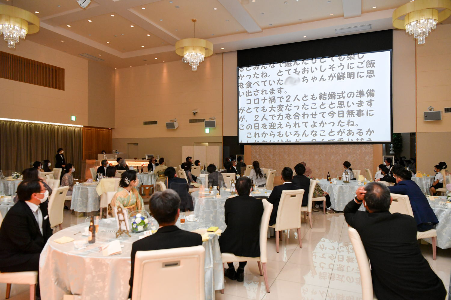 お式は親族様のみで ご友人様は会場でのライブ中継としました