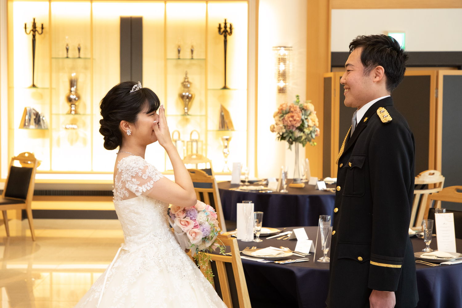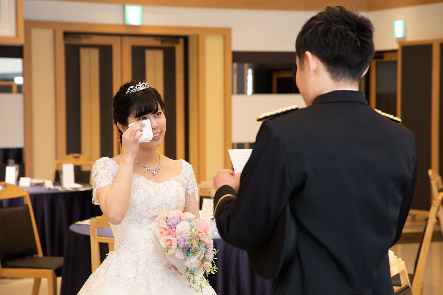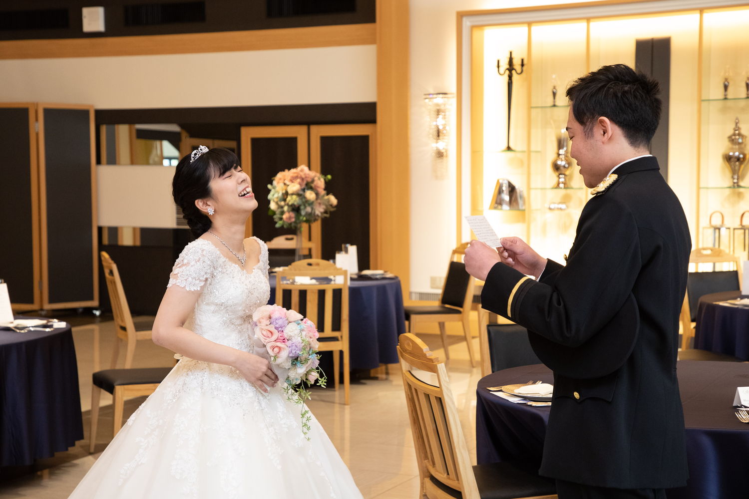 凛と佇む新郎様の姿と サプライズのお手紙に驚きと涙があふれた
