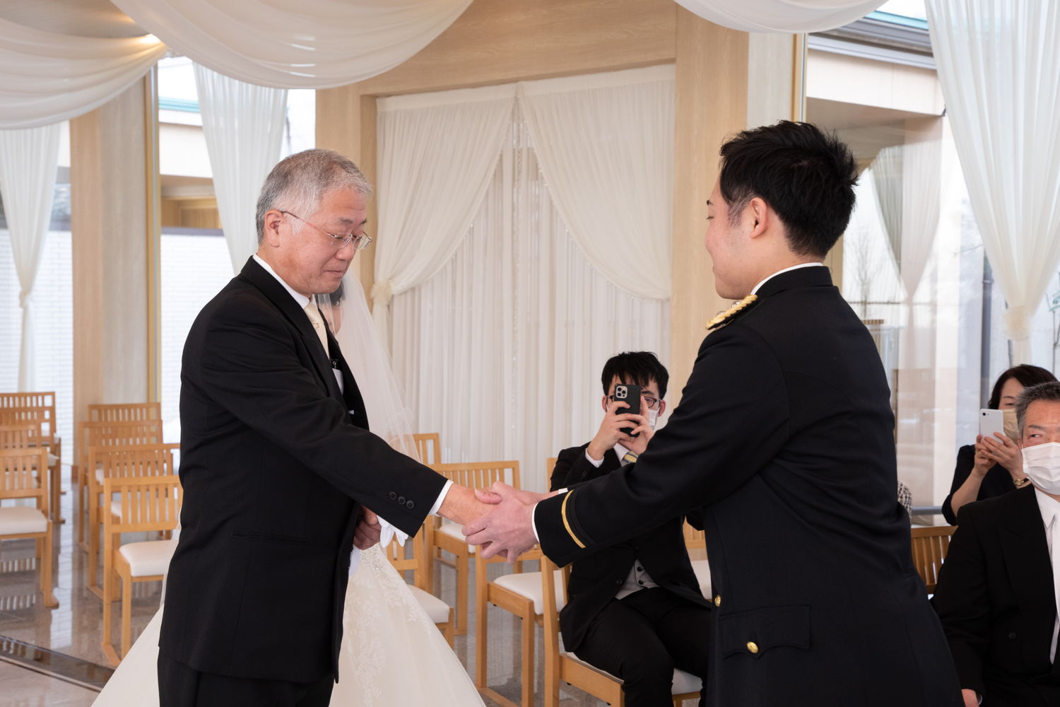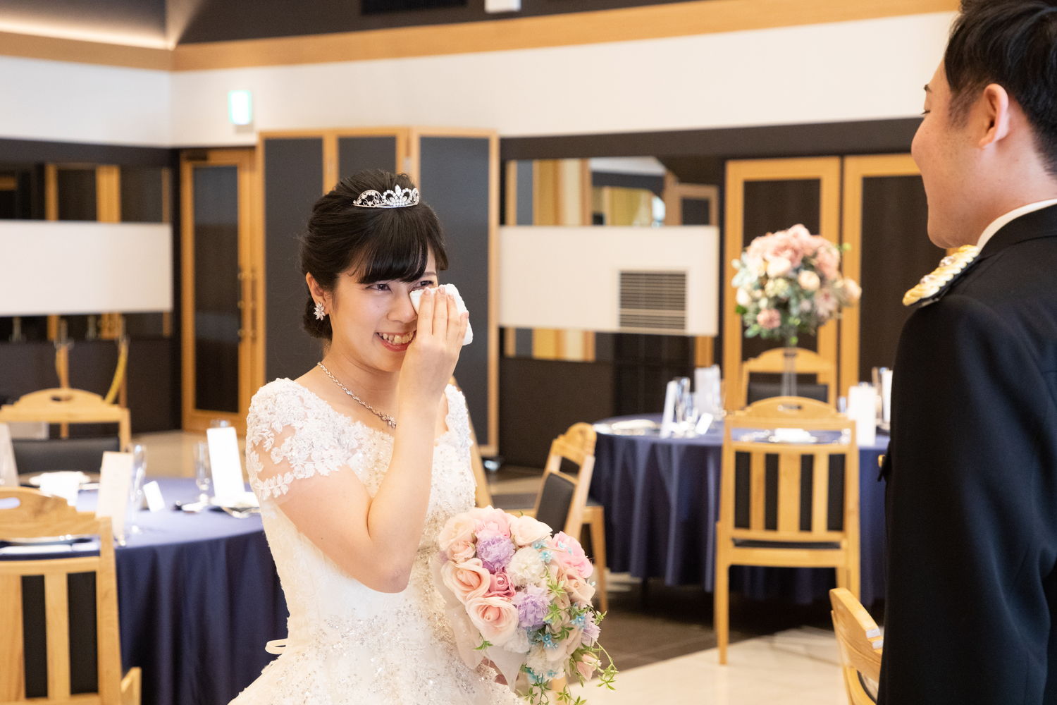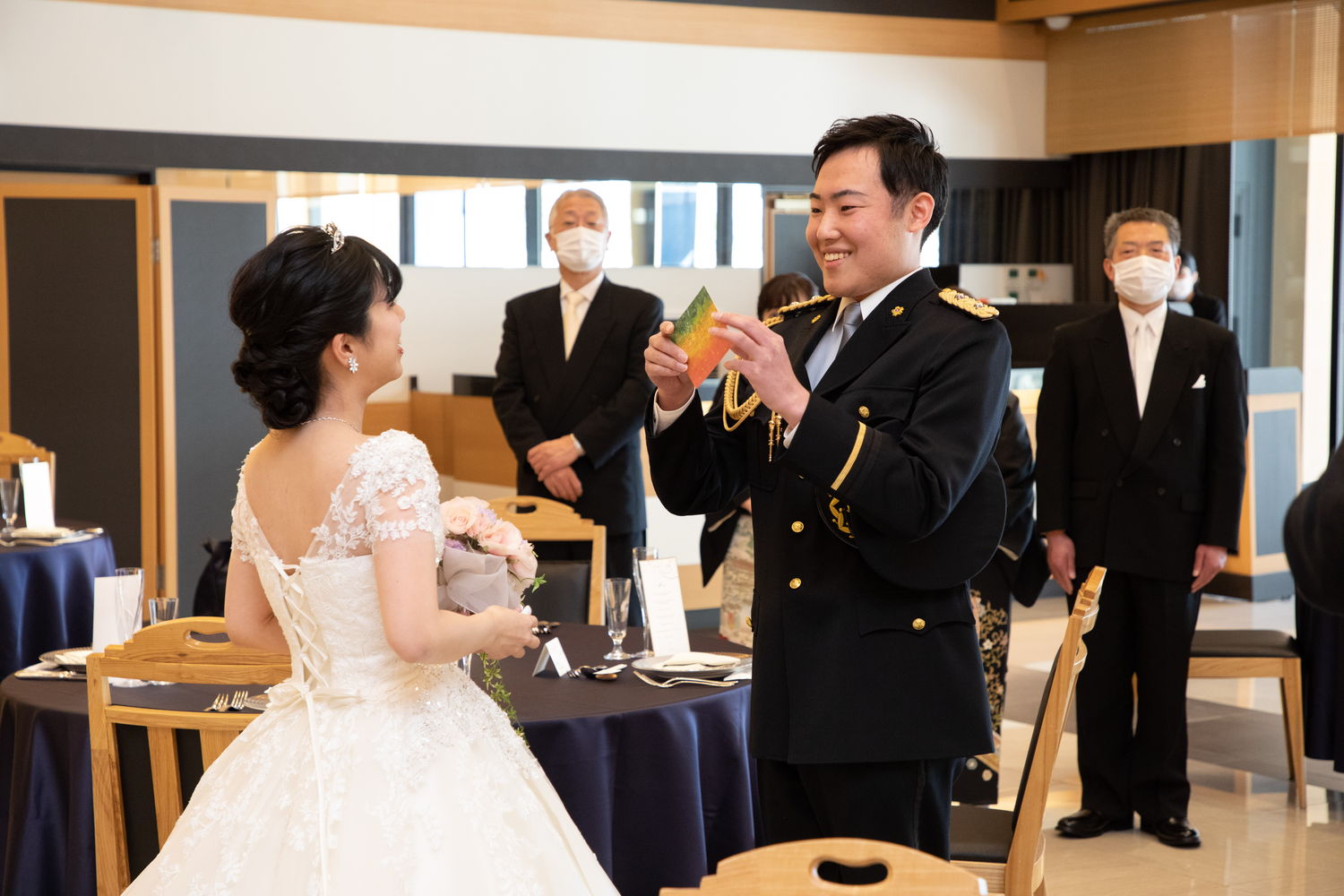 凛と佇む新郎様の姿と サプライズのお手紙に驚きと涙があふれた