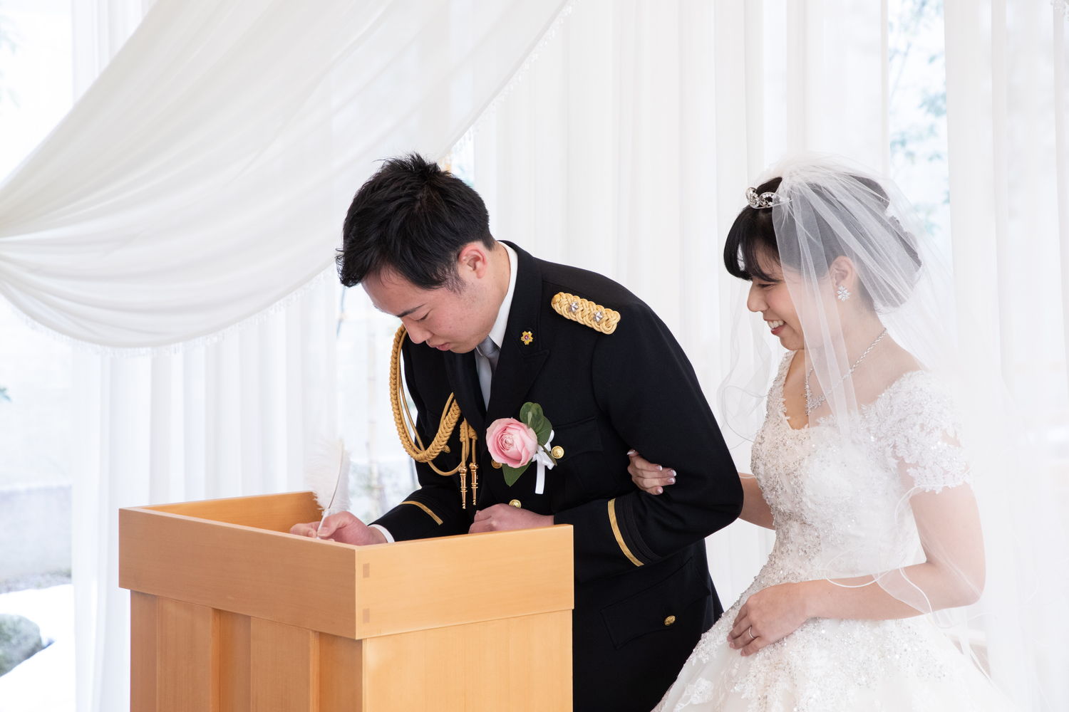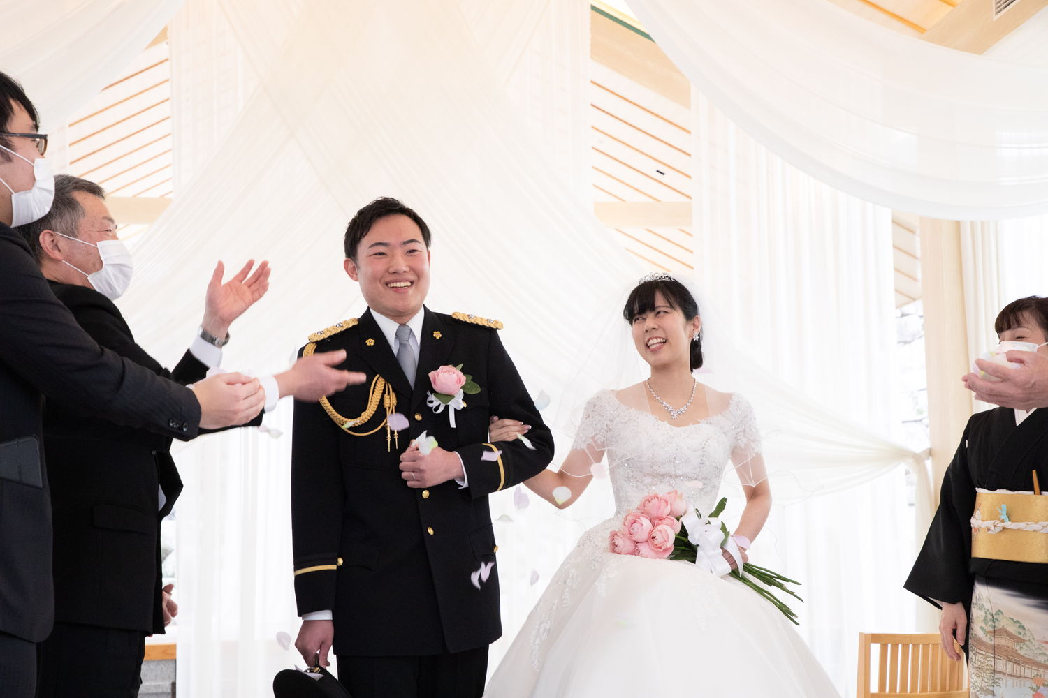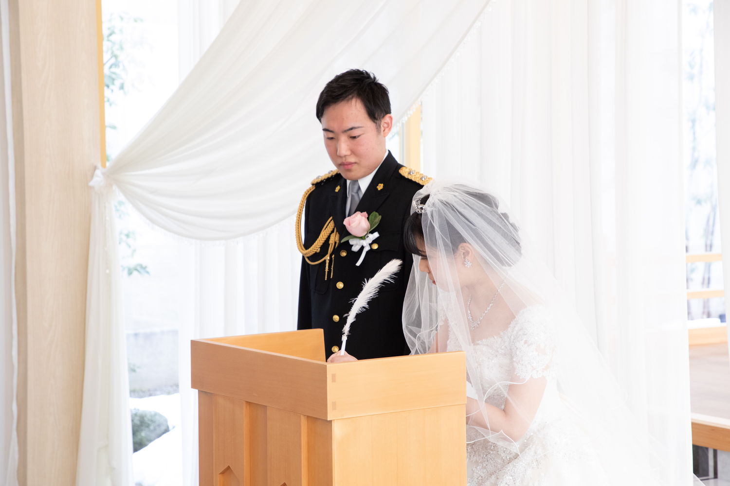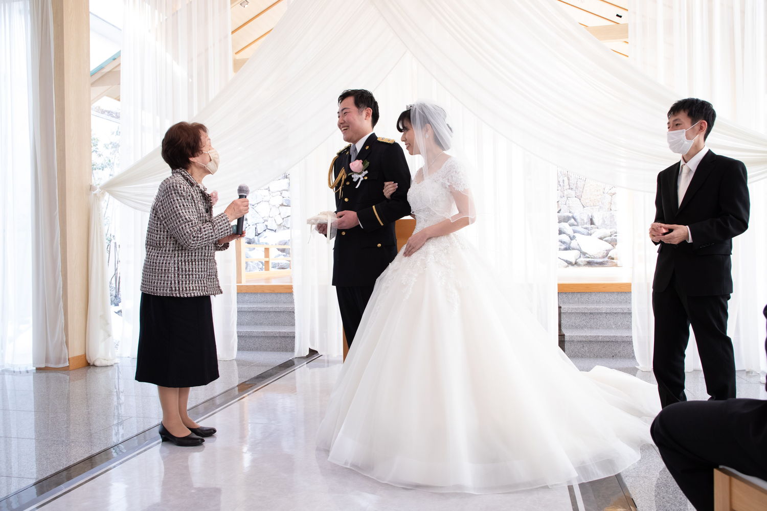 少しはにかみながら大きな声で「誓います!」と答えるふたりの姿