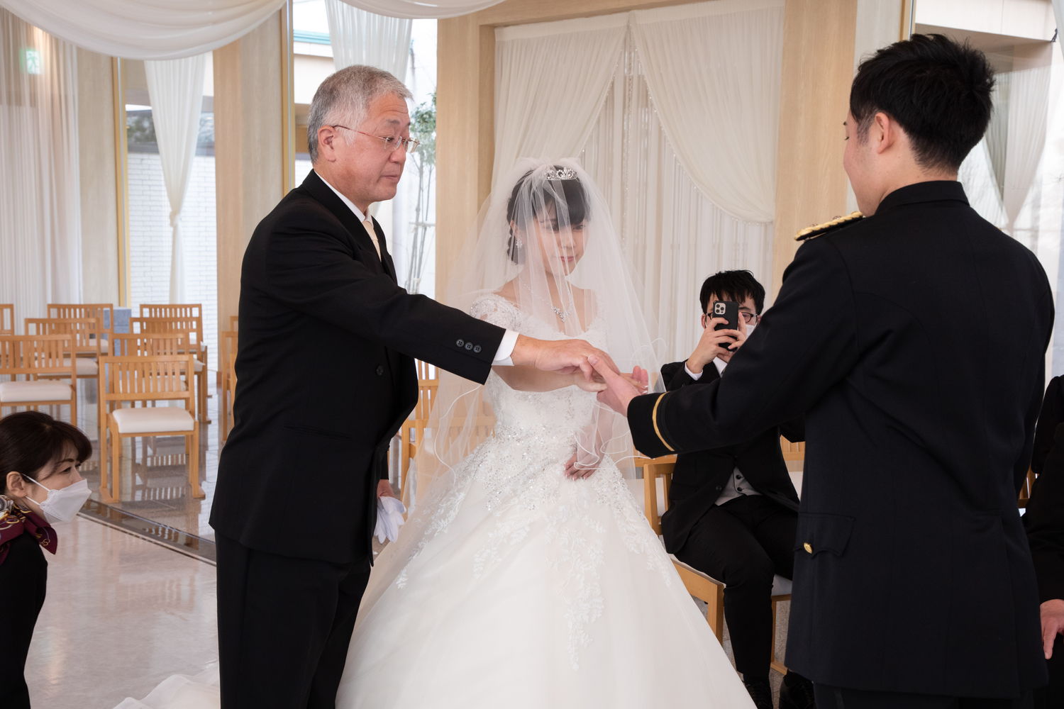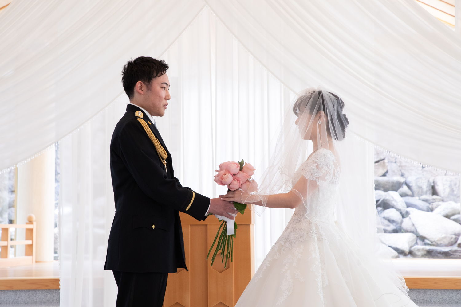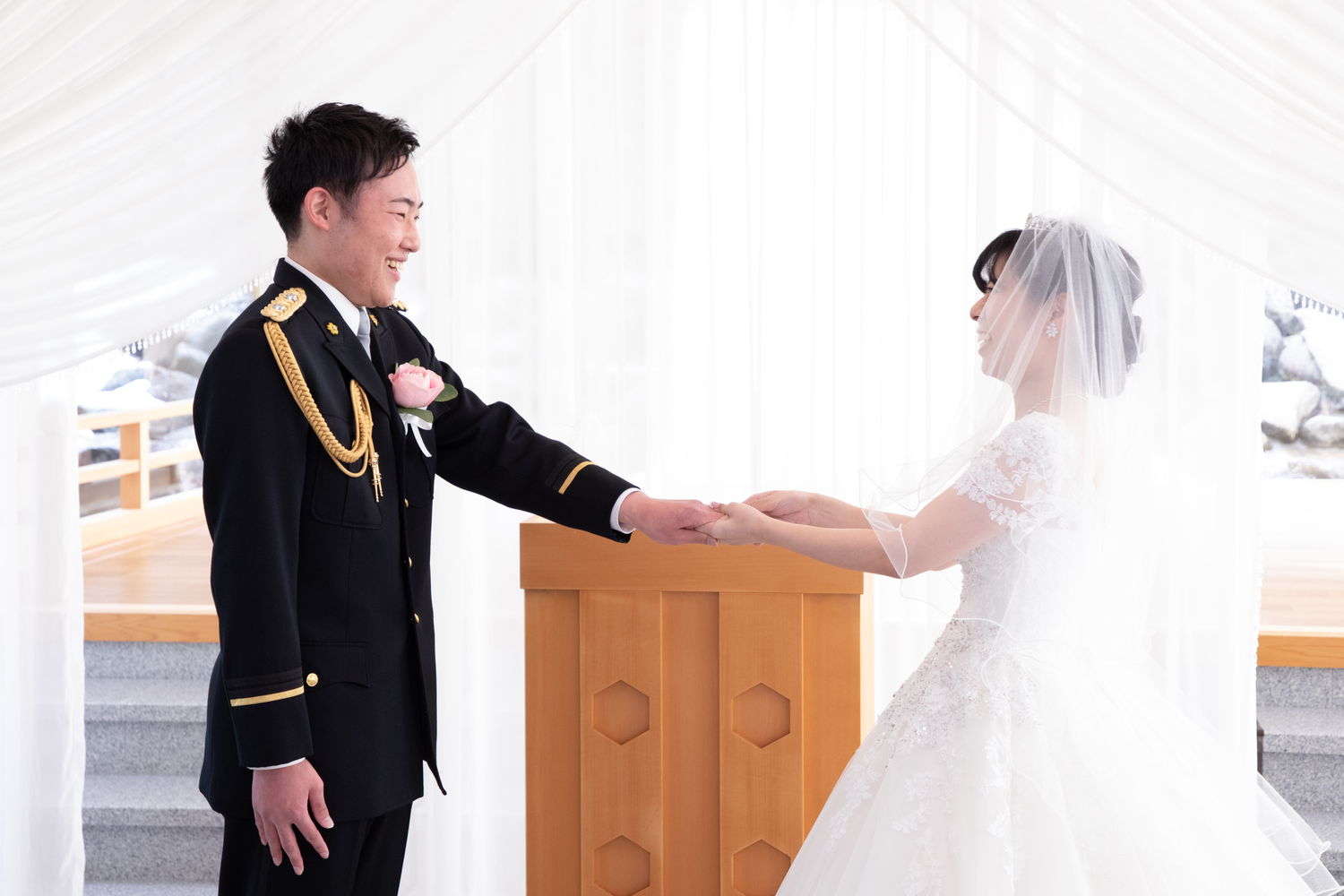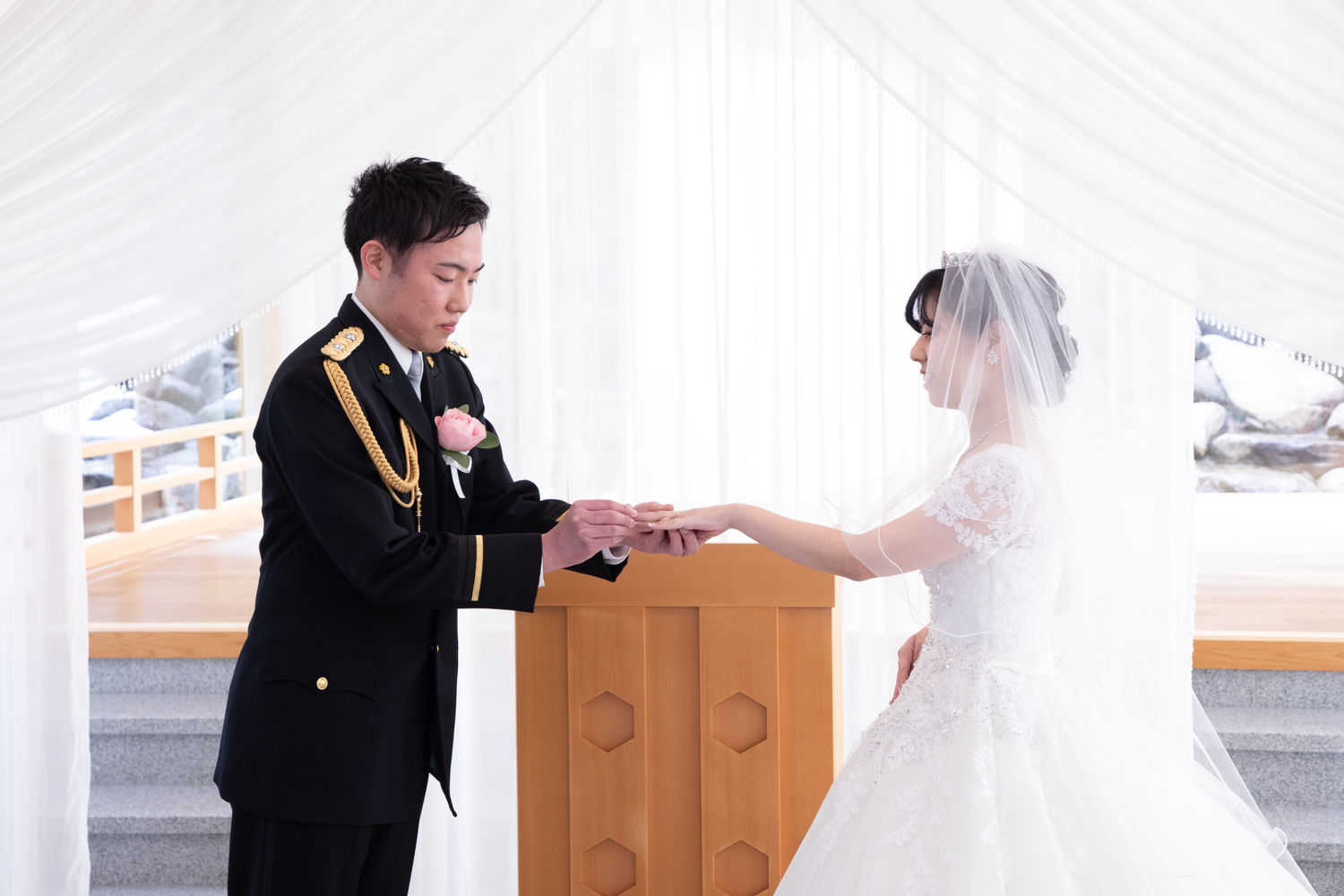 少しはにかみながら大きな声で「誓います!」と答えるふたりの姿