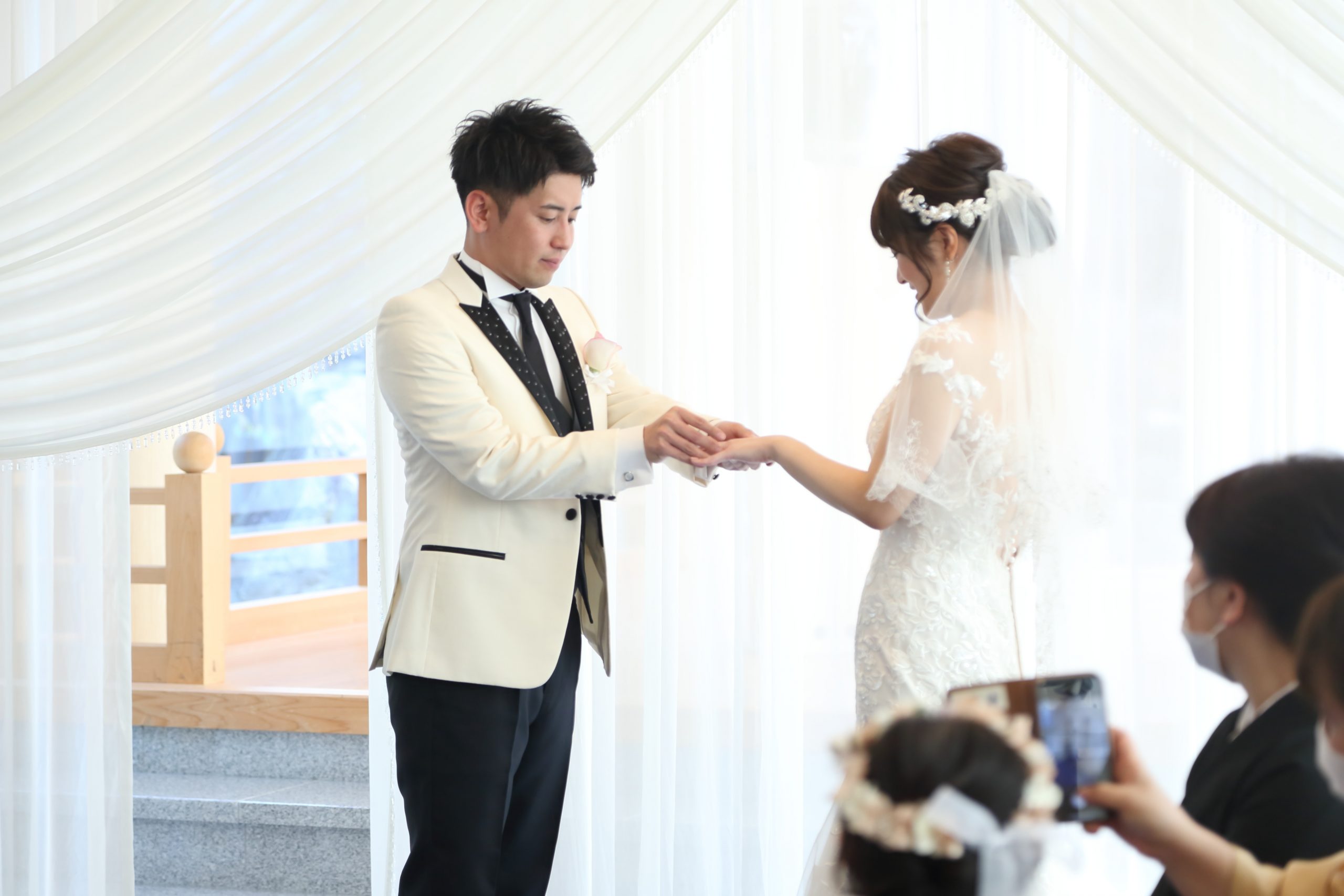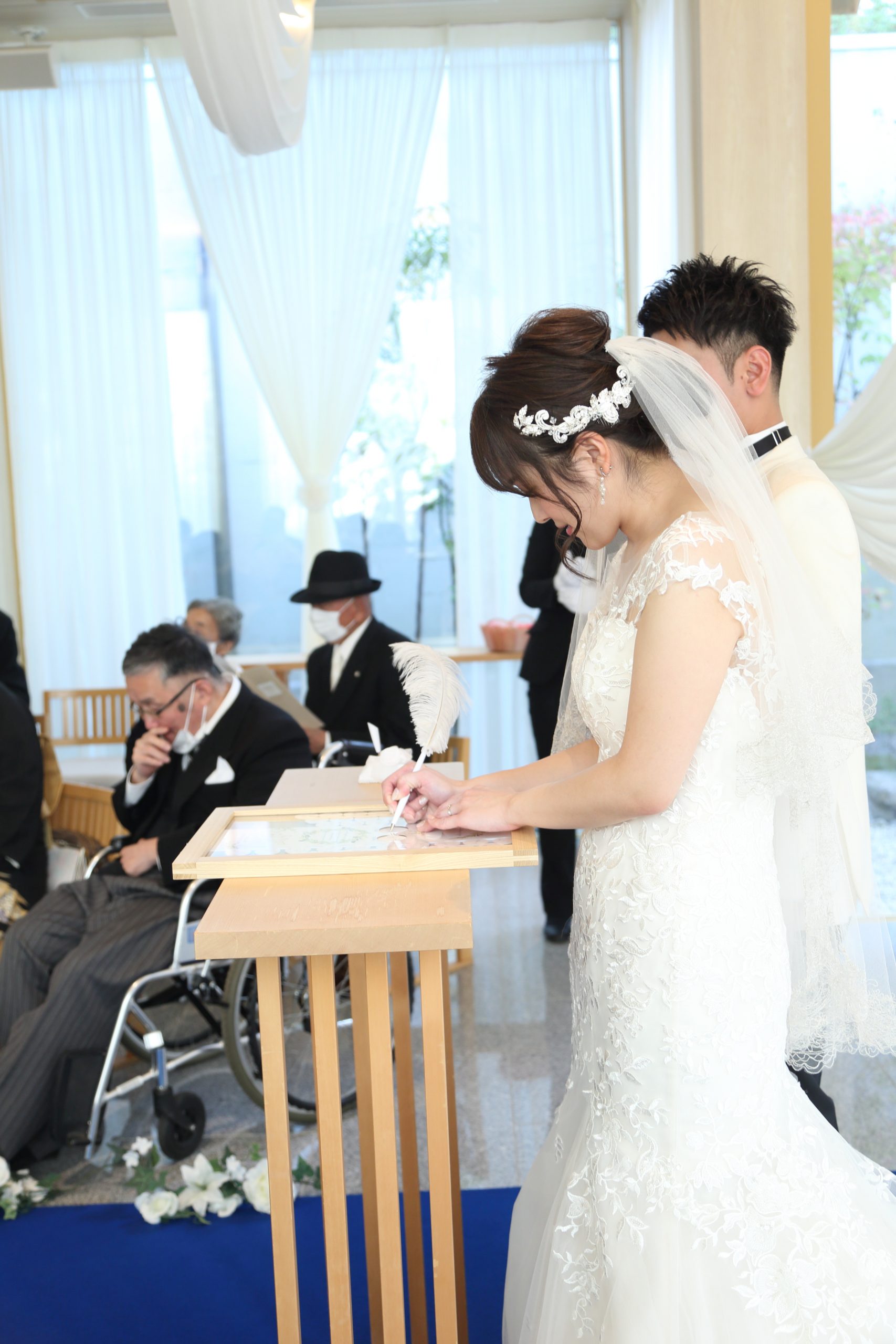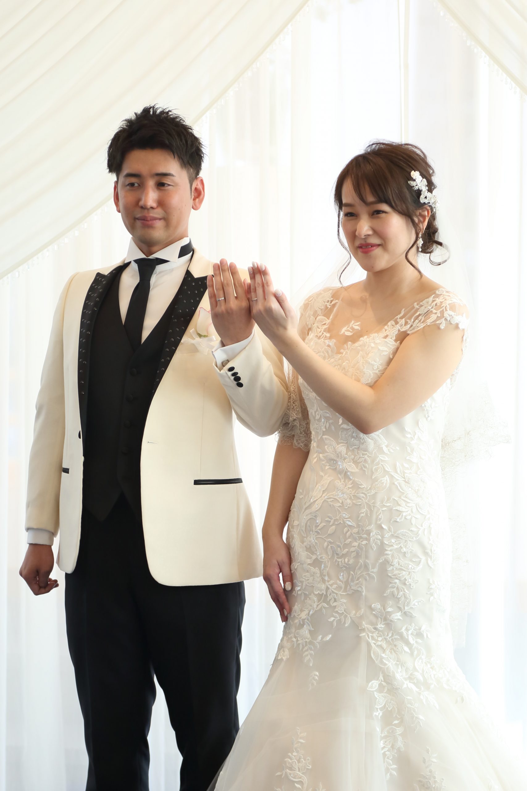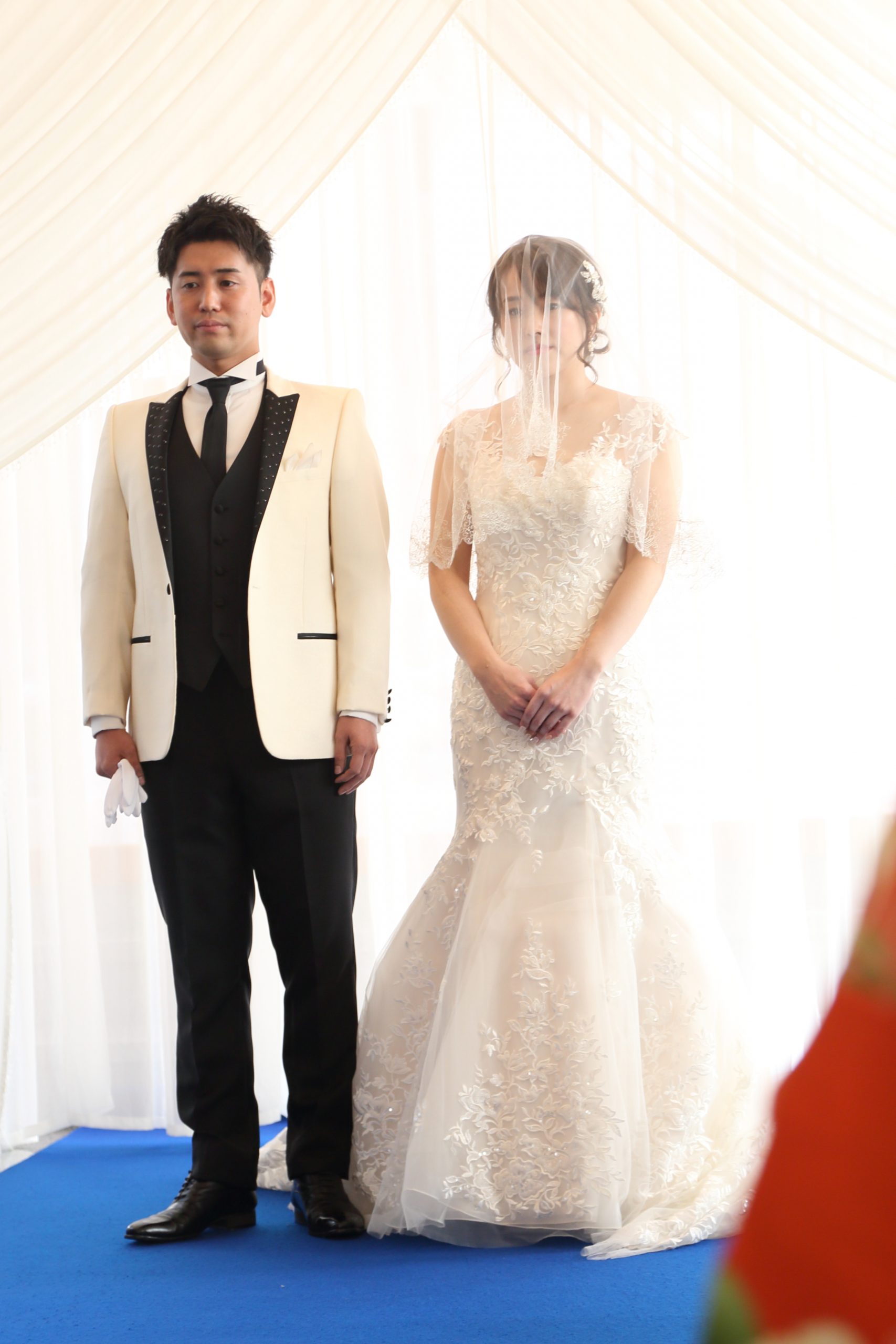 挙式はお気に入りのマーメードウエディングドレスでの人前式