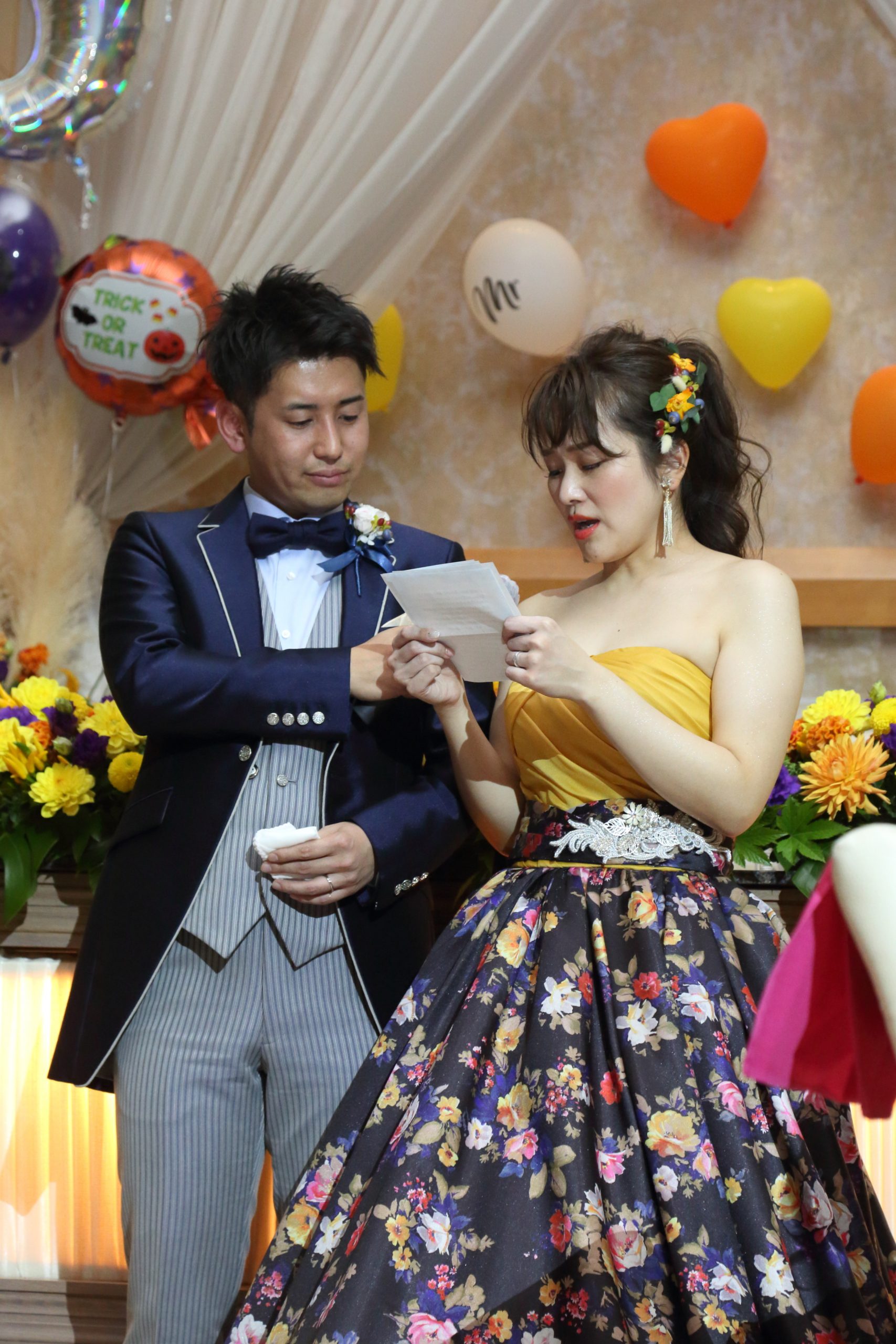 一目惚れのHeavens Flowで、あたたかな空気の中始まっていく一日。そしてハロウィンにピッタリの色鮮やかな披露宴