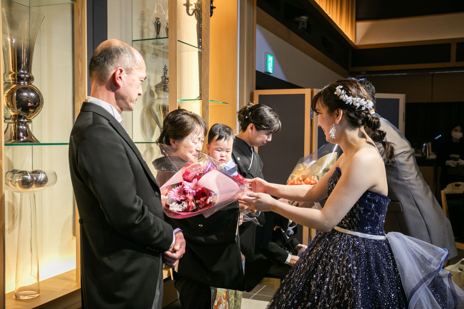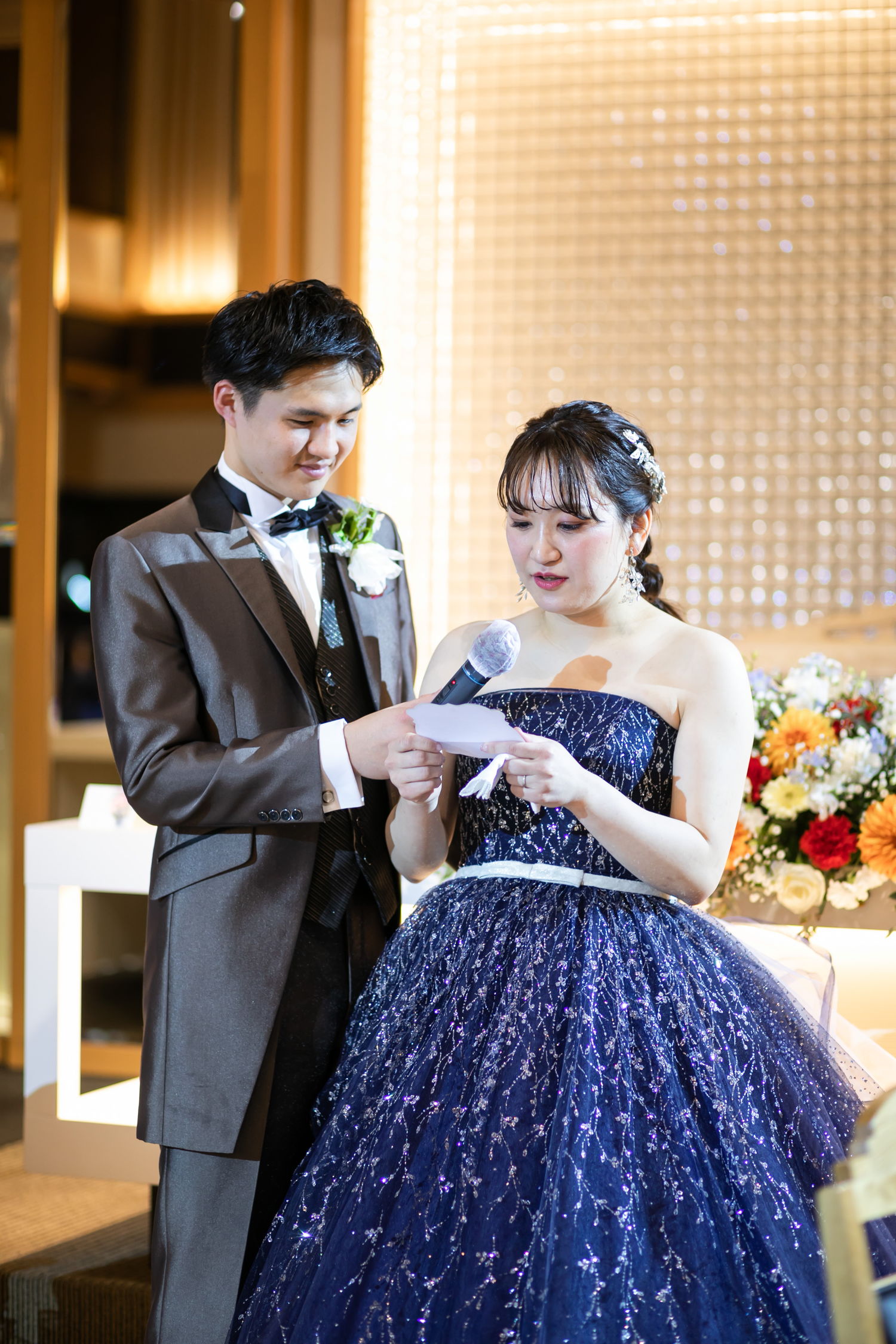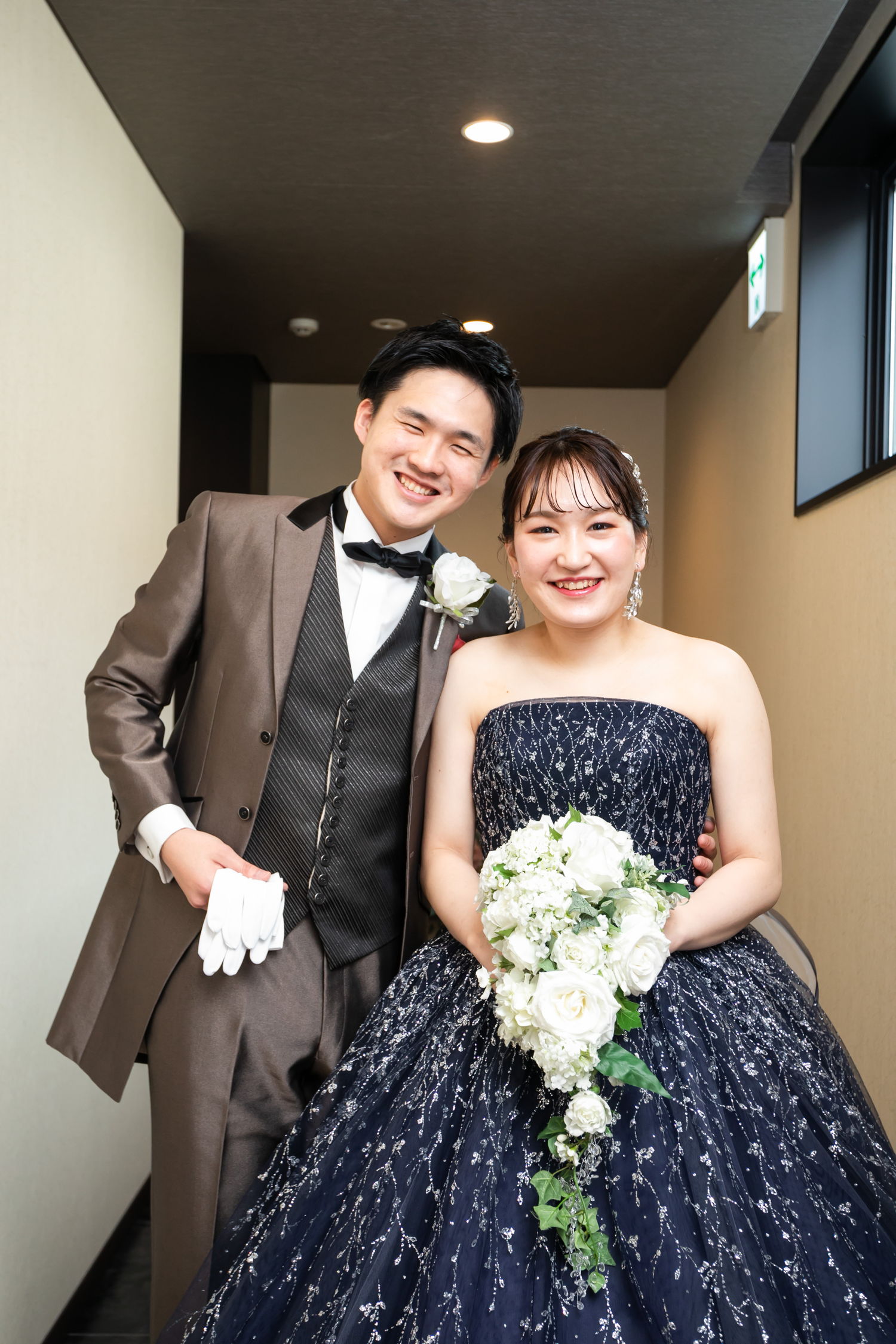 「意外!!!」と思われるネイビーの衣装で登場した新婦