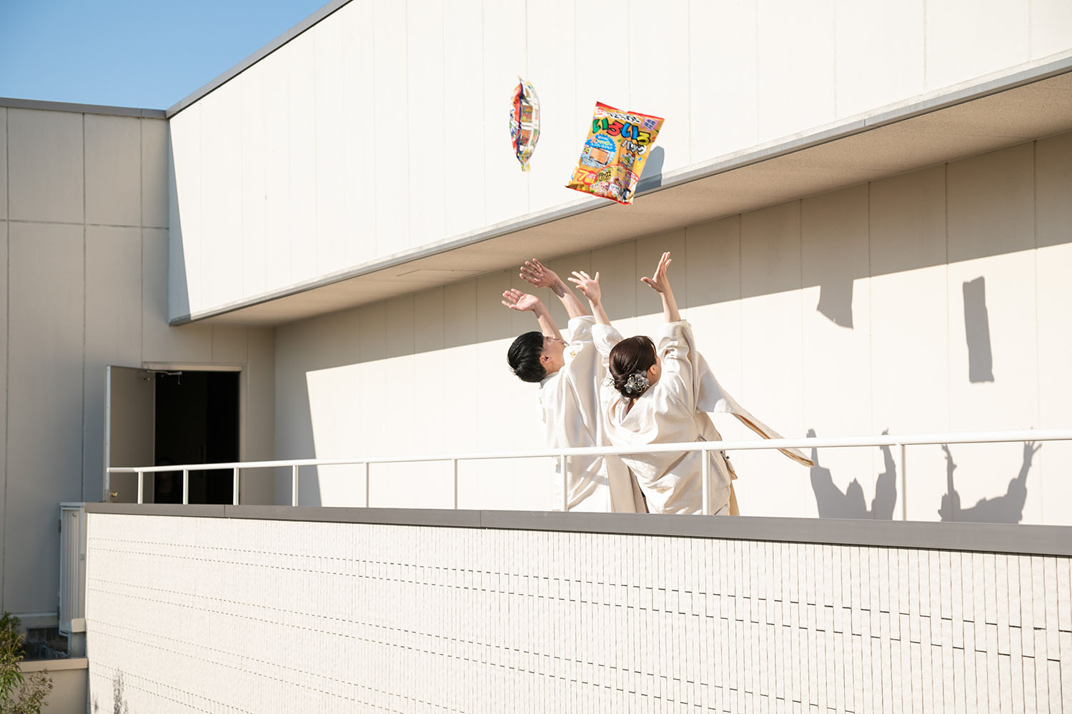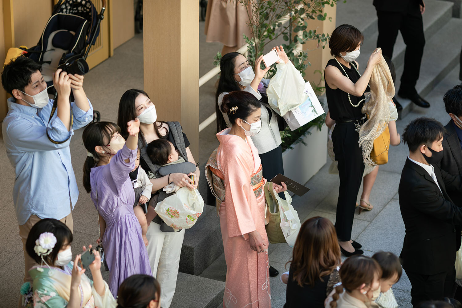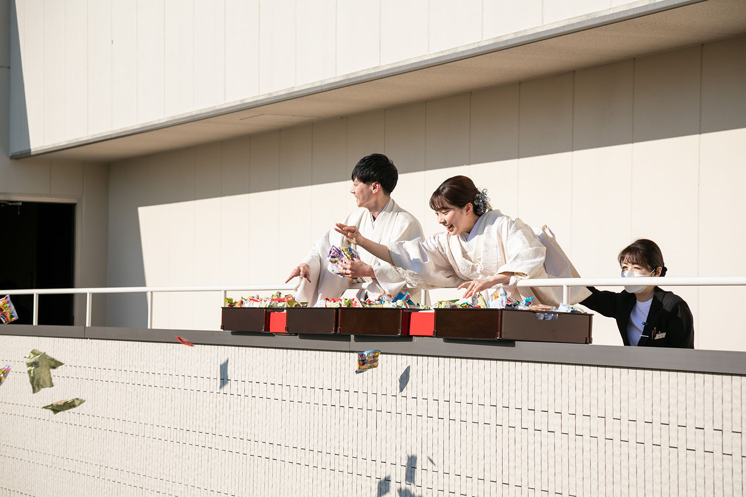 お菓子まきの時間だけ、新郎新婦の友達を招待しました。