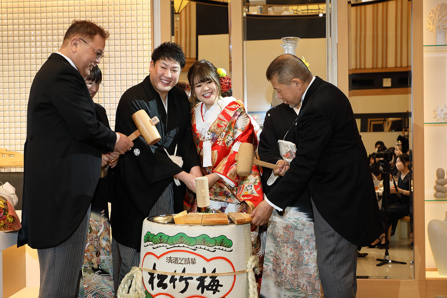 この時使用した番傘は新婦の母が結婚式で実際に使用したものです