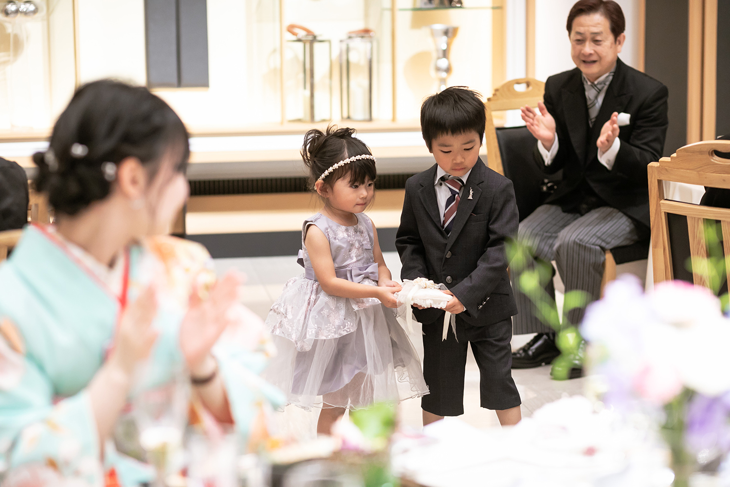 ドレスの色当てクイズやお菓子まきなど小さいお子さんから大人まで全てのゲストの皆様に楽しんでもらえる演出をしたいと考えていました