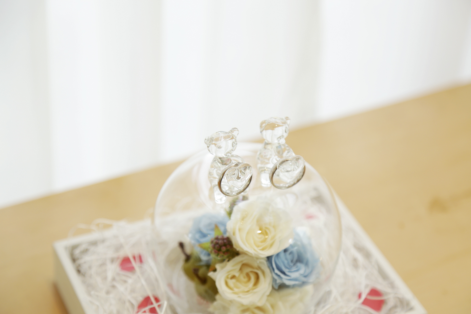 その中でゲストの皆様に楽しんでいただけるようにサプライズを取り入れ ブートニアやリングガールは当日まで秘密にしたり 挙式の中で両親への感謝の思いを伝えさせて頂きました