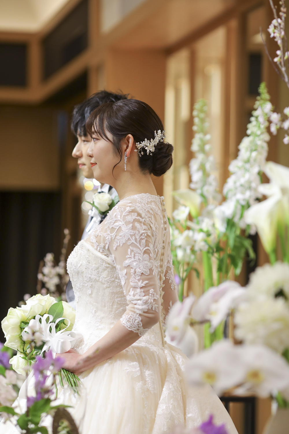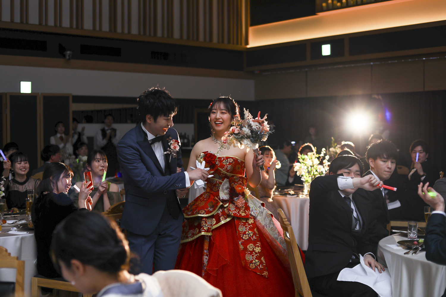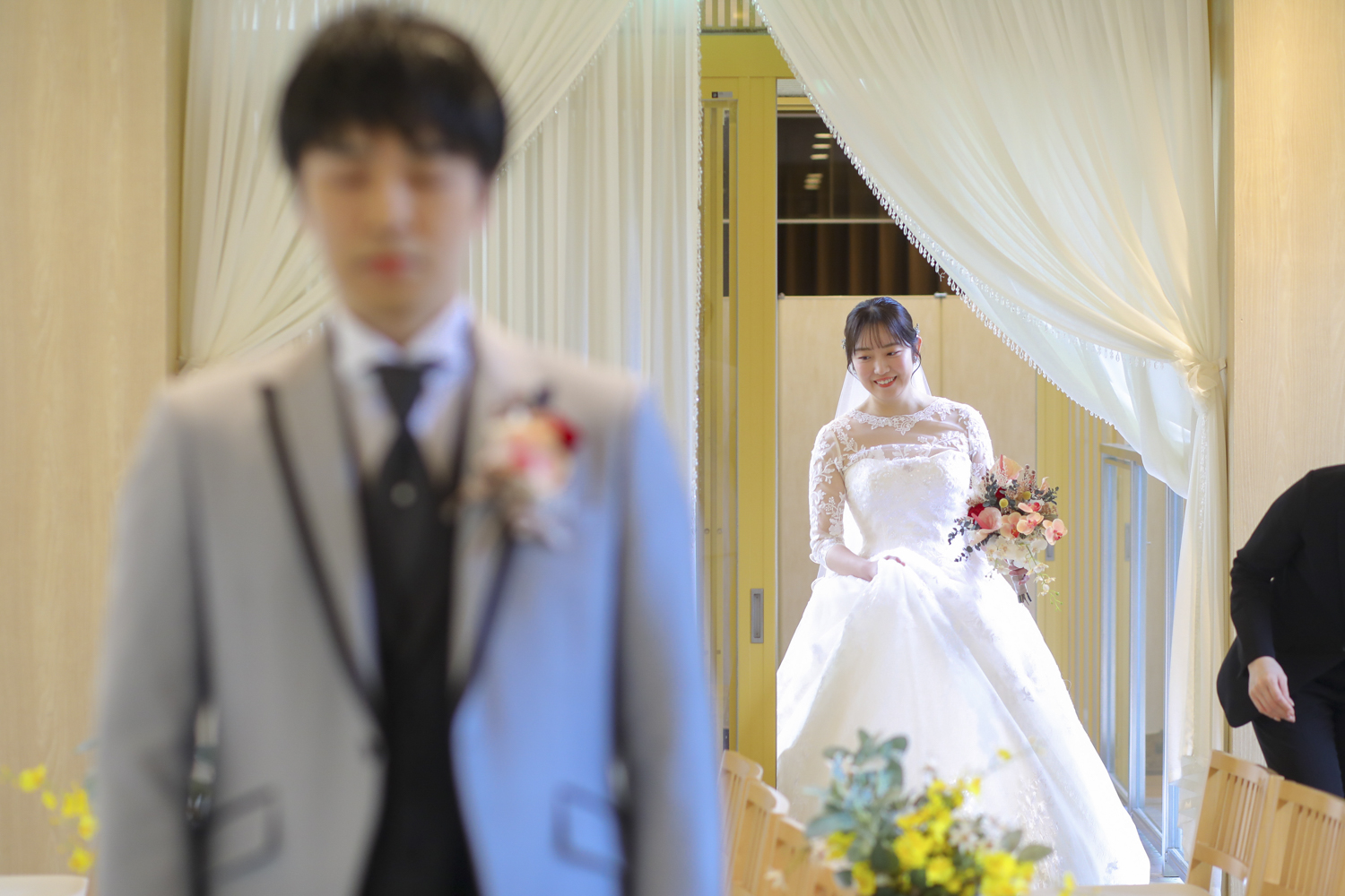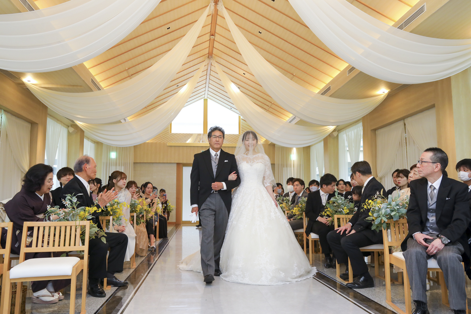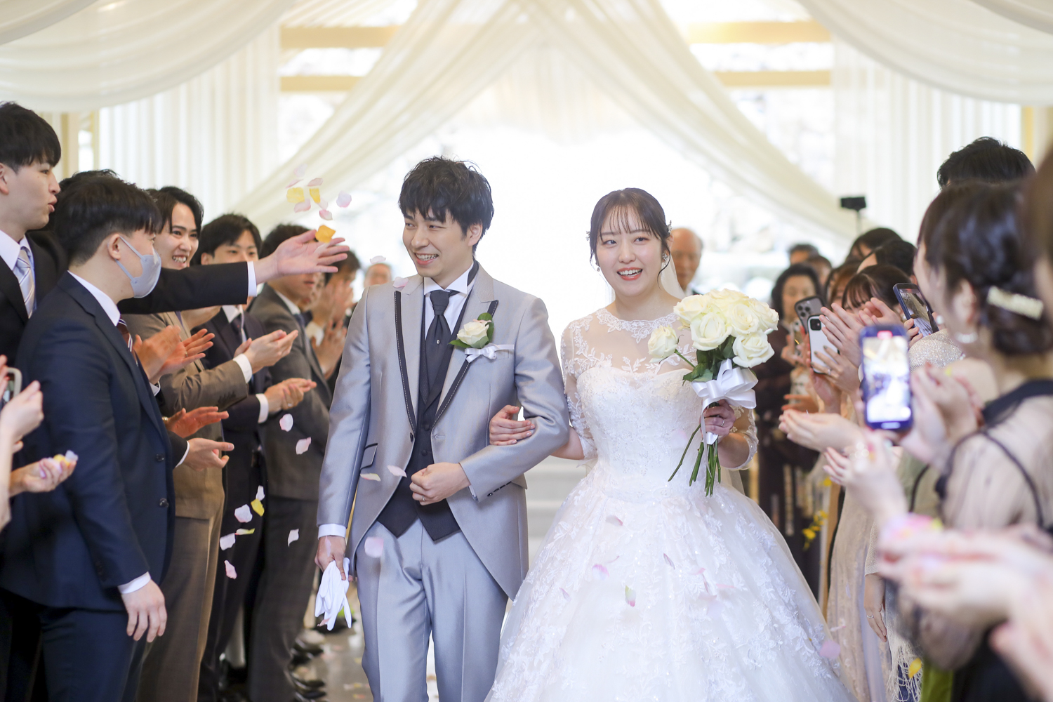 たまたまですが当日は3月にも関わらず雪の予報で新婦が入場する際に雪が後ろで降っていたのが「まるで演出のようで綺麗だった」と言っていただけることもありました(笑)