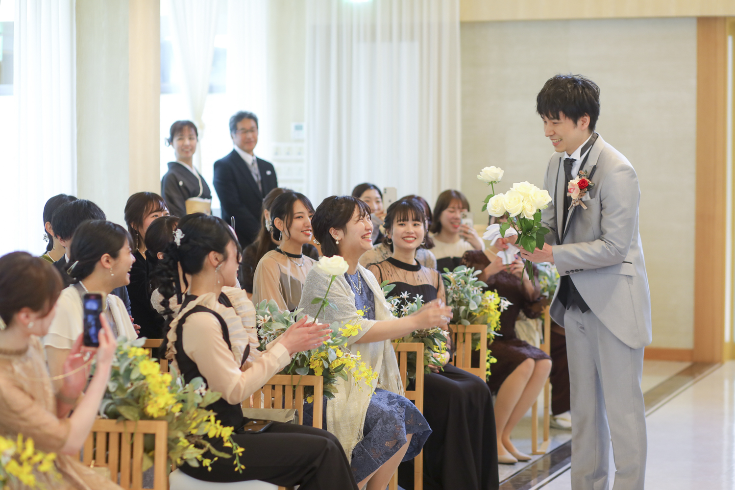 人前式はずっとゲストの方を向いて立つので家族や友人の温かい表情を常に見ることができ良かったと思います