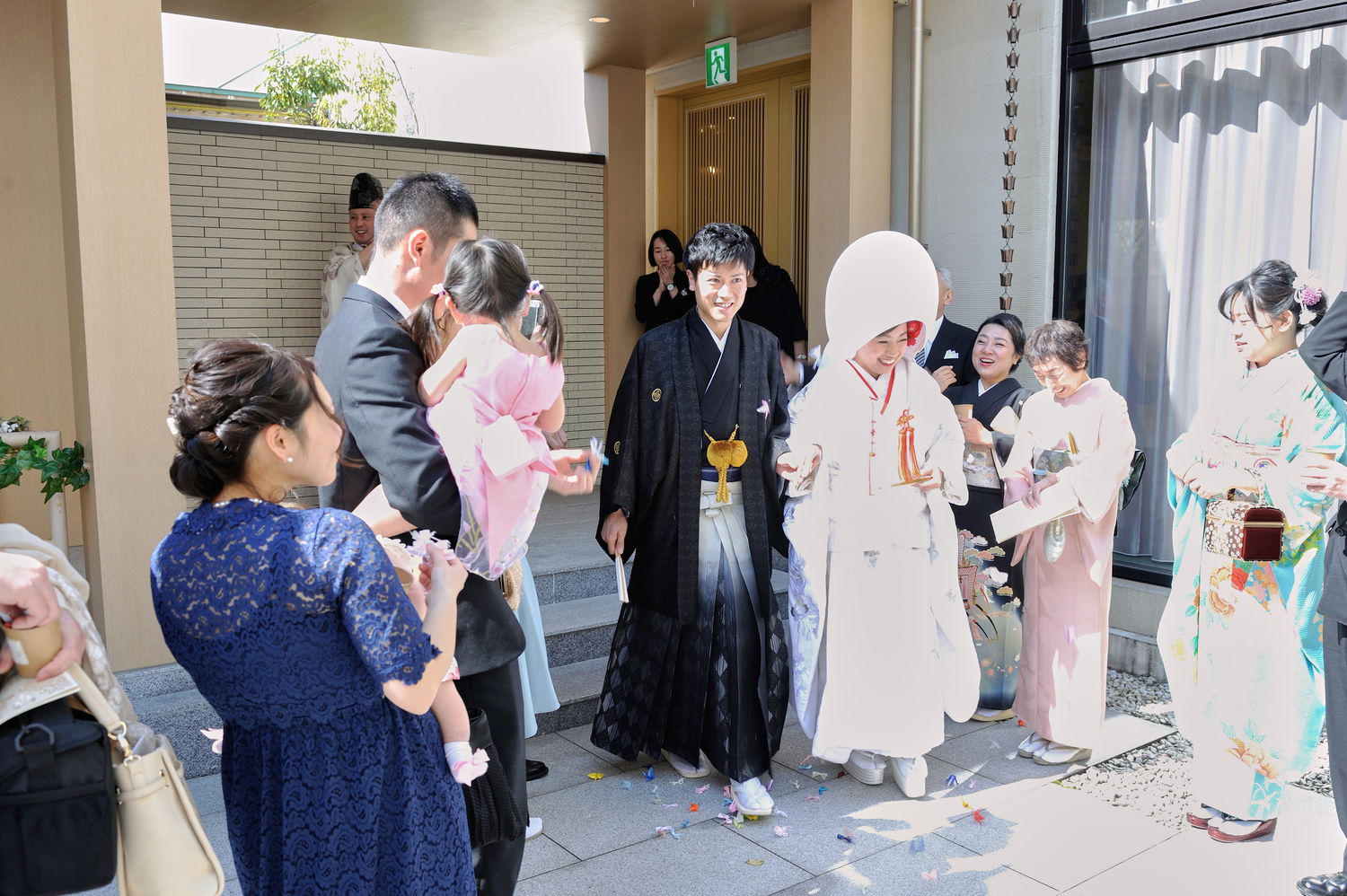 アフターセレモニーには折り鶴とリボンを混ぜたカラフルなシャワーが、新しいご夫婦を祝福・・・♡