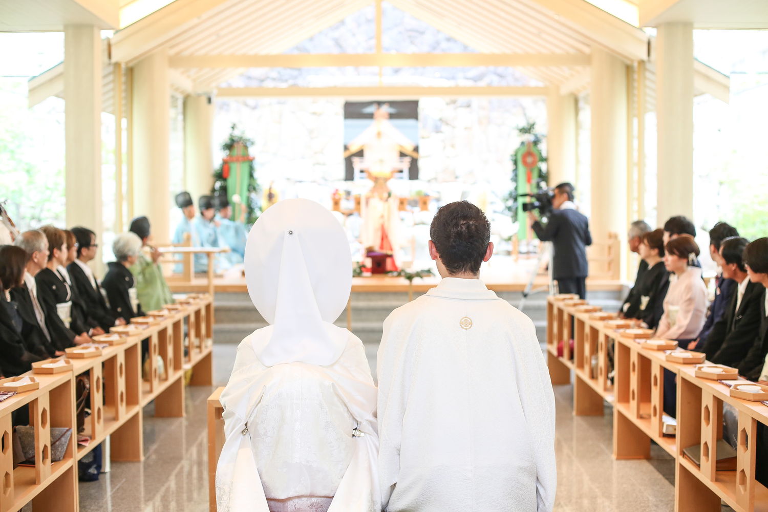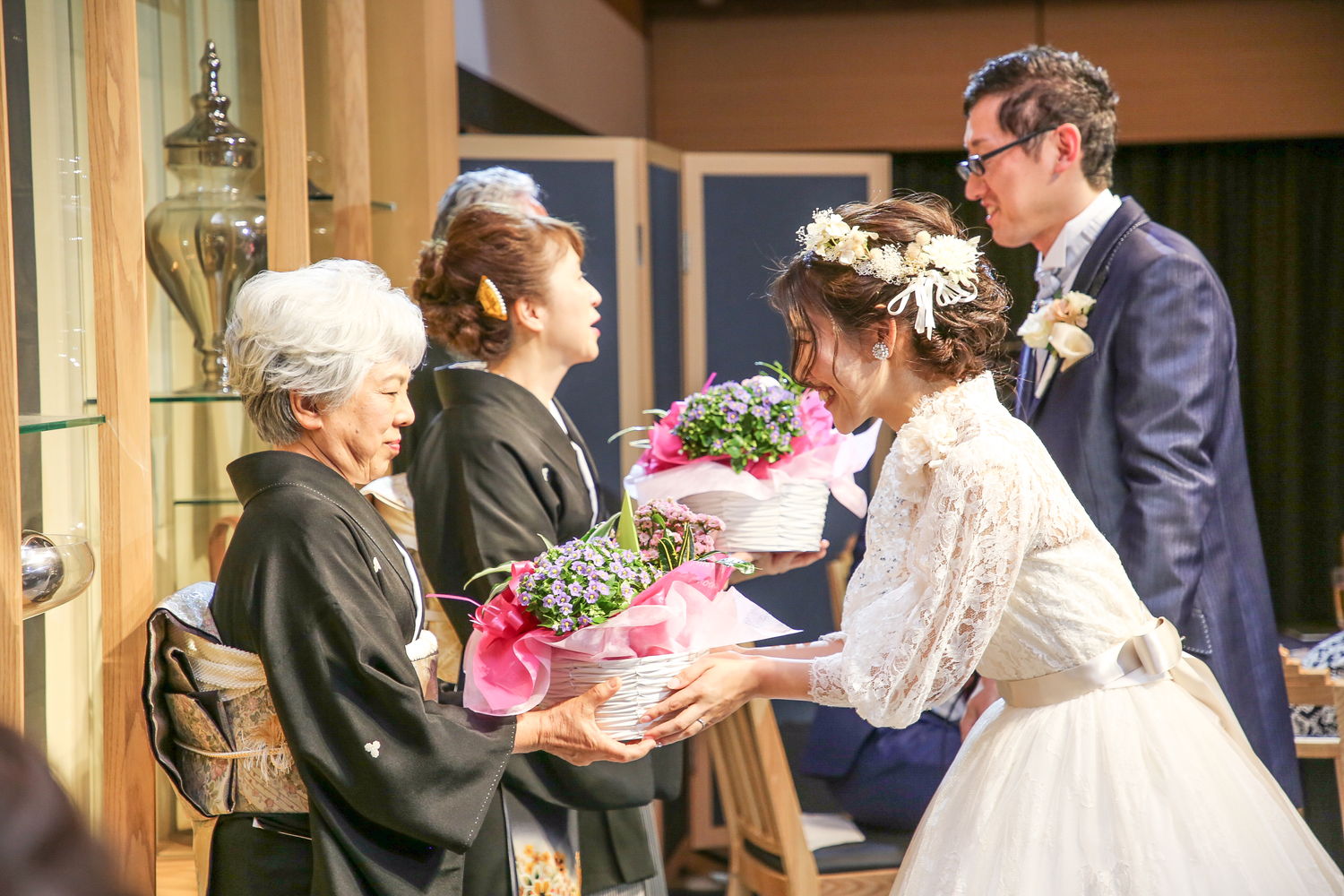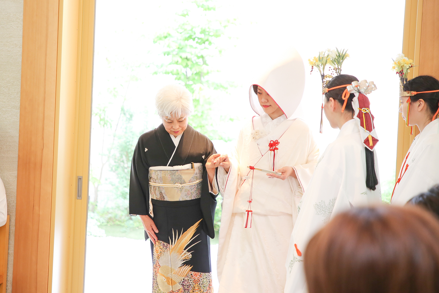 新婦様はお母様に手をひかれながら、ゆっくりと進まれます。