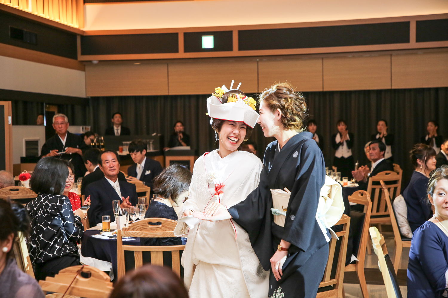 新婦様はスピーチをされたご友人にエスコートしていただき中座へ。