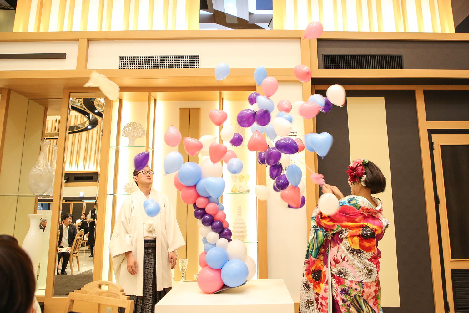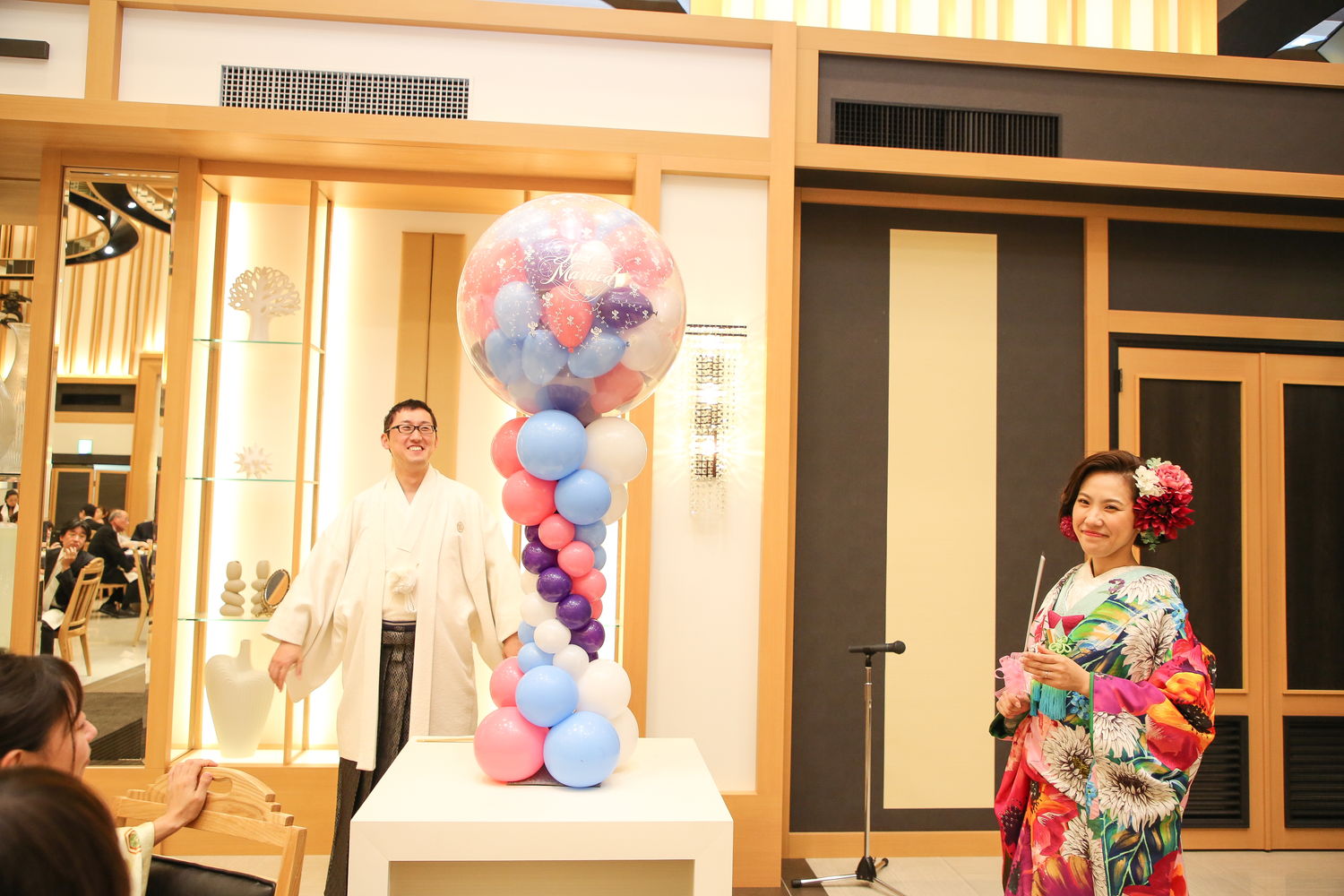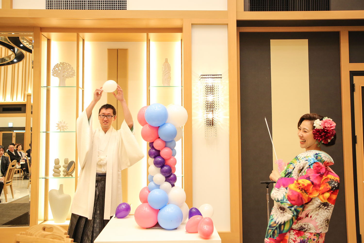 スパークバルーンでは、新婦様がバルーンを開き新郎様がひとつのバルーンをキャッチ!