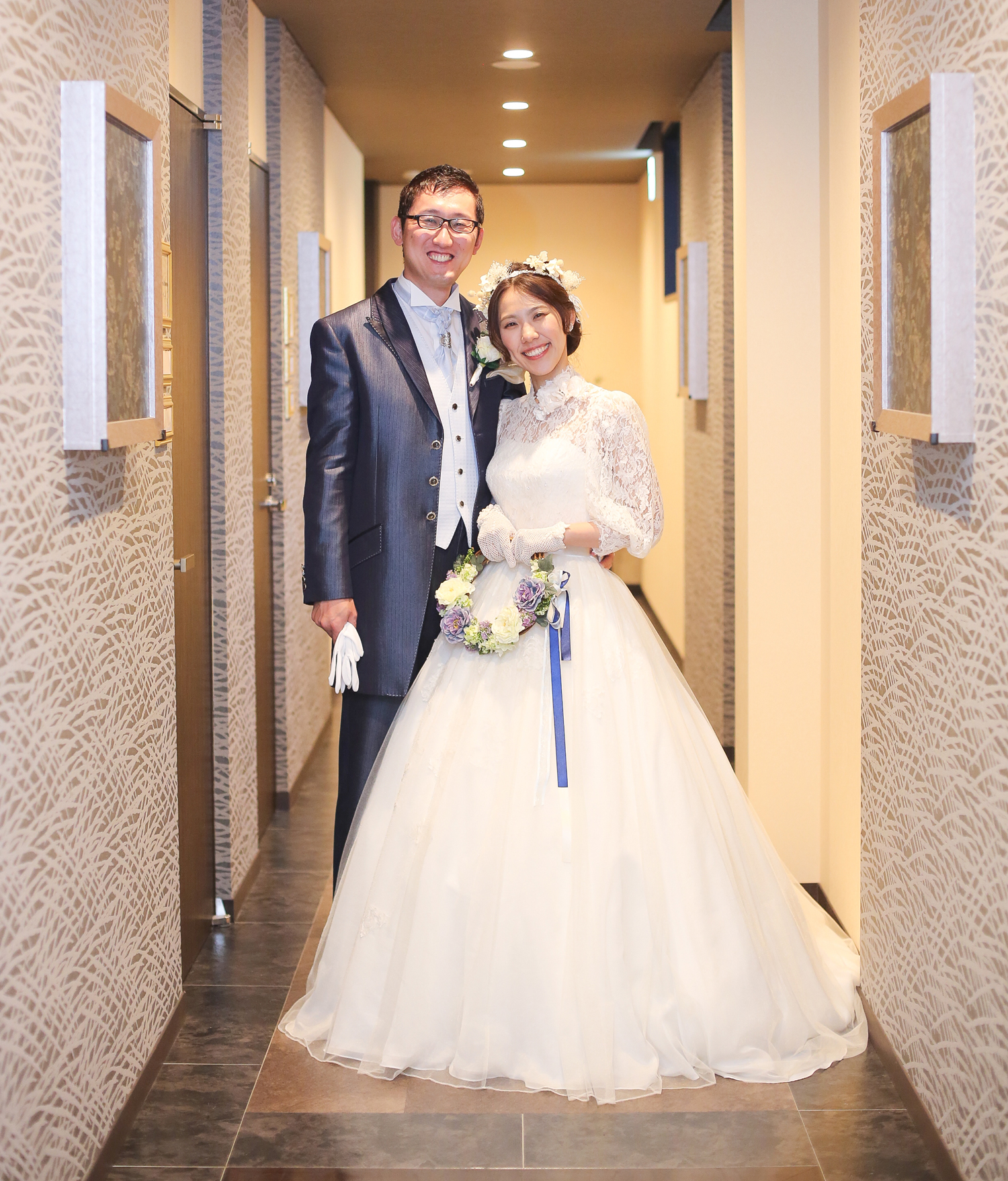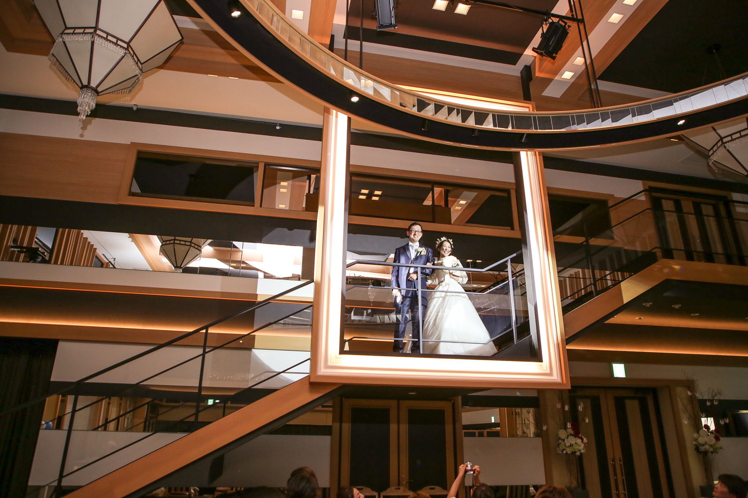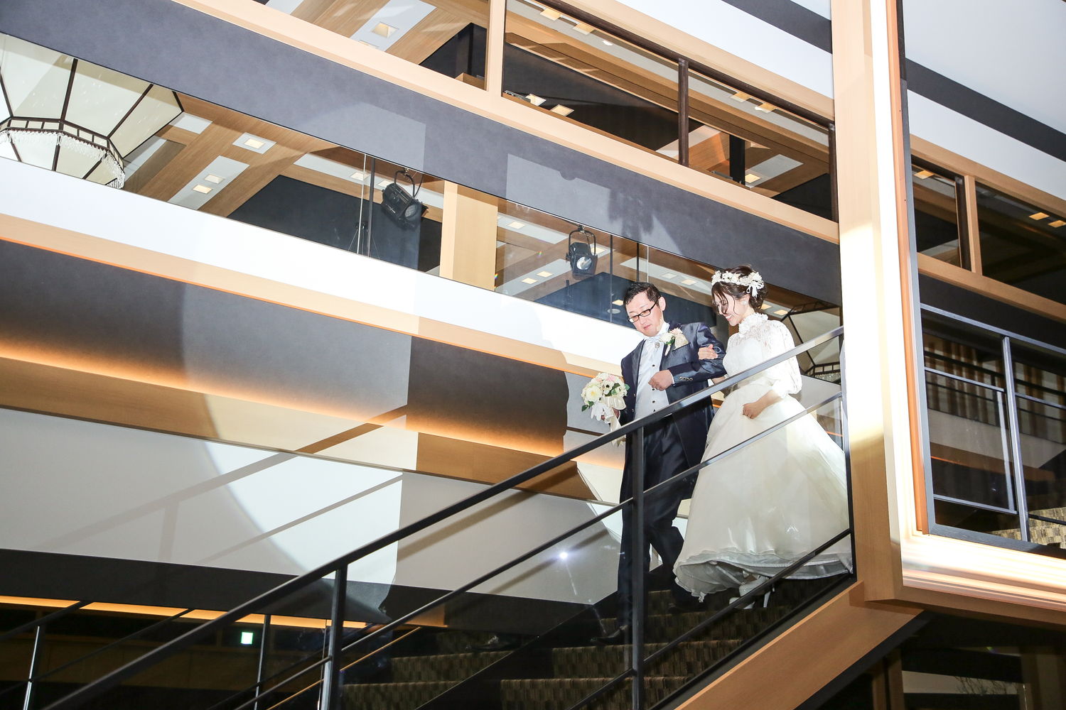 ウェディングドレスとタキシードにお召替えされたおふたりは、大階段からご入場!